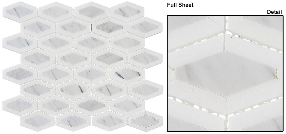 Tile Size: 2” x 3” DiamondSheet Size: 12 7/8” x 11 1/4”Sheet Coverage: 1 SQFRows Per Sheet: 8Tiles Per Sheet: 244Cut into Borders: Any Tile Thickness: 25/64” (10mm)Grout Joint: 1/16” (2mm)Mesh Mounted: YesDisclaimer:In order to avoid stains and discoloration as well as to prevent grout from getting into the pores of the tile; this product should always be sealed prior to grouting.Due to the variance in installation methods, grout colors, lighting, image variances and computer monitor settings; the images above may not accurately represent the true color of the products after installation.Therefore Glazzio Tiles always recommends that tiles not be purchased from an image of any kind.