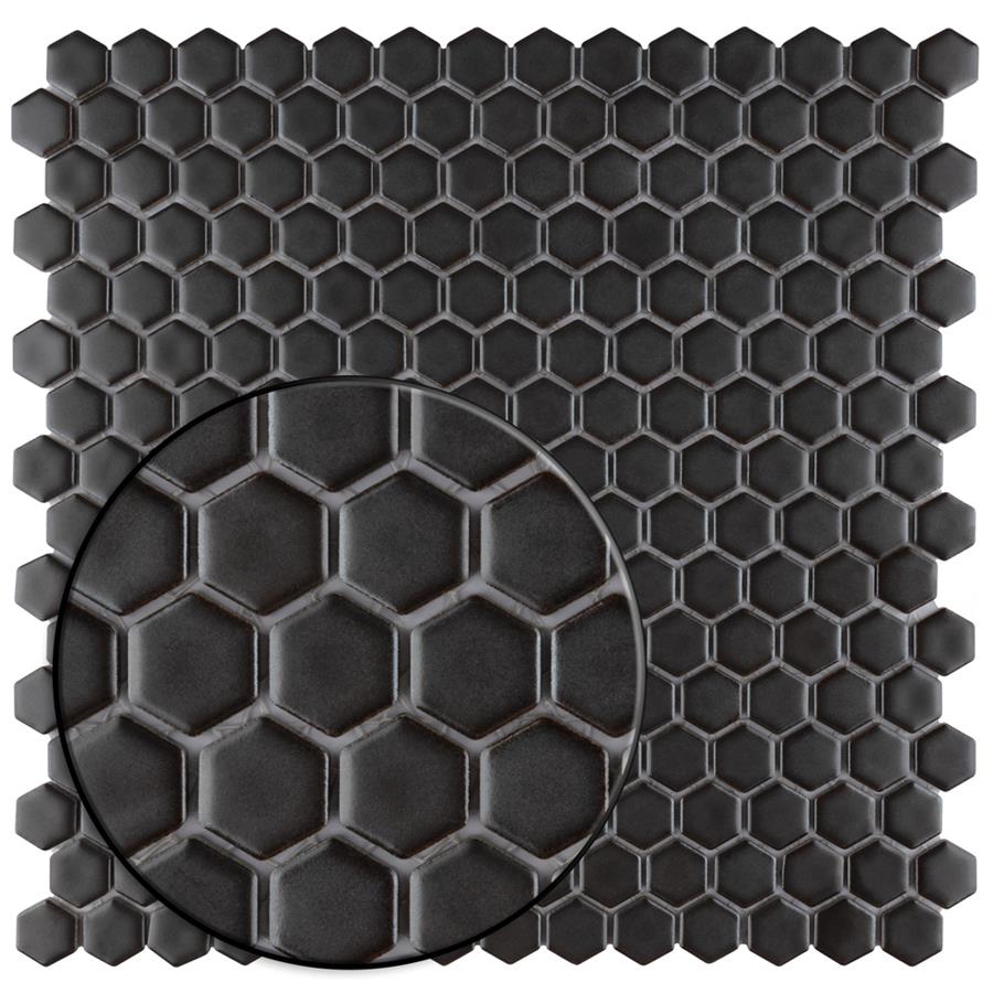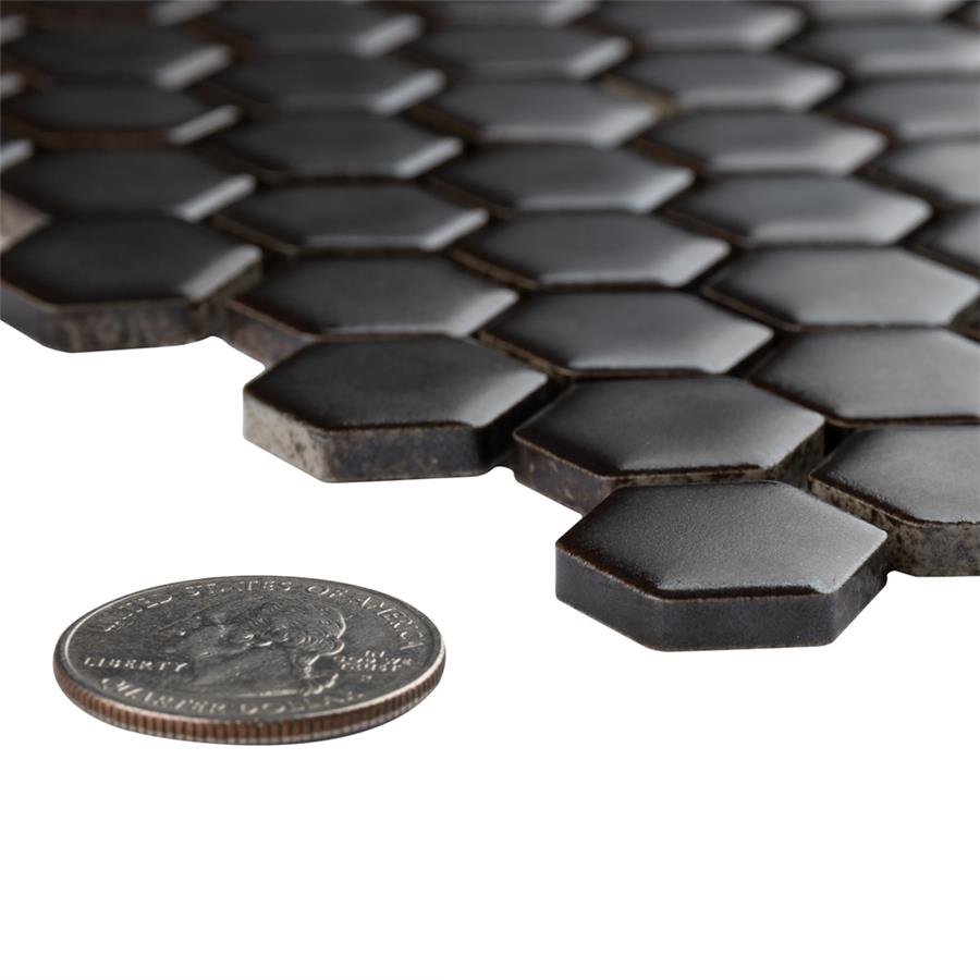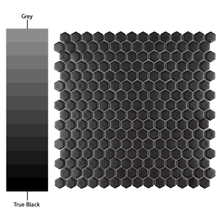 Transform your space into a tribute to retro design with our Colmena Hex Matte Gunmental 11-1/2″ x 11-5/8″ Porcelain Floor and Wall Mosaic Tile. As a modern deviation from the classic mosaic, this fresh option is a throwback to traditional retro design with a contemporary feel. Matte charcoal grey hexagons with rounded edges are arranged on an interlocking mesh to create a seamless installation. This minimalistic geometric porcelain mosaic is unique yet simplistic enough to integrate into any design, ranging from traditional style renovations to modern home projects. Its impervious and durable features make this an ideal tile for both indoor and outdoor use, including backsplashes, bathrooms, showers, kitchens, fireplace facades, patios and entryways. Tile is the better choice for your space. This tile is made from natural ingredients, making it a healthy choice as it is free from allergens, VOCs, formaldehyde and PVC.