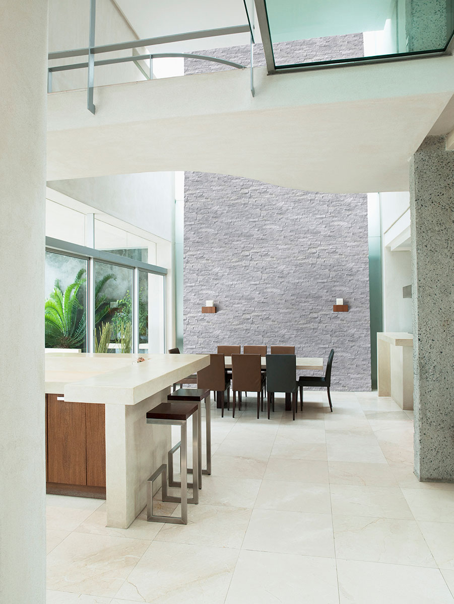 With cool gray tones and a sleek split face finish, Cosmic Gray stacked stone ledger panels are ideal for indoor and outdoor wall design projects. No matter the architectural style, make a statement with Cosmic Gray stacked stone. Use them to create an exterior planter wall, distinctive kitchen backsplash, show-stopping accent wall, and more. Matching corners are available to create a cohesive look.