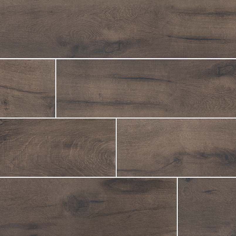 Wenge Porcelain Wood Tile from the Cottage Collection resembles natural hardwood, complete with a rich variation of dark-brown knots and graining for the most authentic wood look tile floor. Its subtle vintage finish and warm color lend an inviting feel to your indoor or outdoor space. Incredibly durable and low-maintenance, this stunning wood look plank goes almost anywhere you want it to—even damp and wet areas where real wood isn’t up to the task. Create gorgeous floors, accent walls, backsplash, and countertops with this modern-day wood look tile.Flooring Info:Residential: YesCommercial Light: Yes