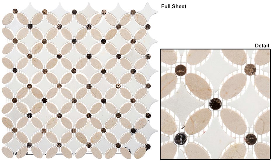 Crema marfil(oval)+Emp. dark(dots)+Thassos white(dots) Flower