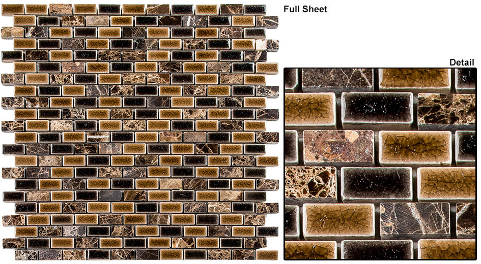 Tile size: 1” x 1/2”Sheet size: 11 5/8” x 11 1/2”Sheet coverage: .93 SQFRows per sheet: 22Tiles per sheet: 242Cut into Borders: Every 2 rowsTile thickness: 5/16” (8mm)Grout Joints: 1/16” (2mm)All tiles are mesh mounted.Due to the variance in installation methods, grout colors, lighting, image variances and computer monitor settings; the images above may not accurately represent the true color of the products after installation.Therefore Glazzio Tiles always recommends that tiles not be purchased from an image of any kind.** In order to avoid stains and discoloration as well as to prevent grout from getting into the pores of the tile; all Crackled Glass, Crackled Glaze and Stone products should always be sealed prior to grouting.