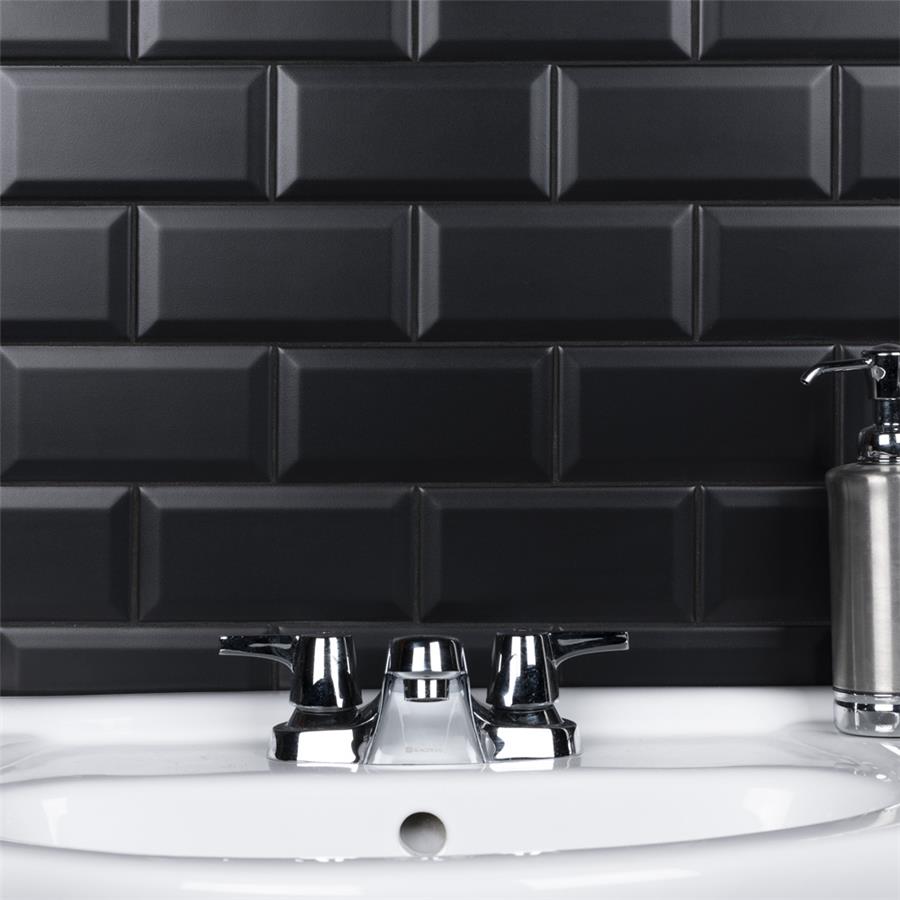 Featuring a simplistic yet sophisticated nature, our Crown Heights Beveled Matte Black 3 in. x 6 in. Ceramic Wall Tile has the ability to elevate spaces through its classic, clean design. With a matte multi-dimensional beveled surface, this slightly textured black subway tile adds sophisticated depth to any space. Given the versatility of its format, this subway tile is unique yet simplistic enough to integrate into any design, ranging from traditional style renovations to modern home projects. Intended for indoor wall use, this tile is an ideal choice for backsplashes, bathrooms, showers and kitchens. This tile is a perfect choice on its own or paired with other products in the Crown Heights Collection.Tile is the better choice for your space. This tile is made from natural ingredients, making it a healthy choice as it is free from allergens, VOCs, formaldehyde and PVC.Important: Please note that we strongly recommend the use of unsanded grout.