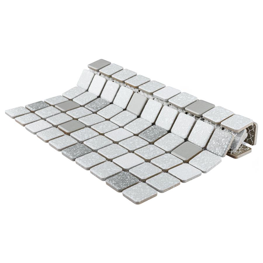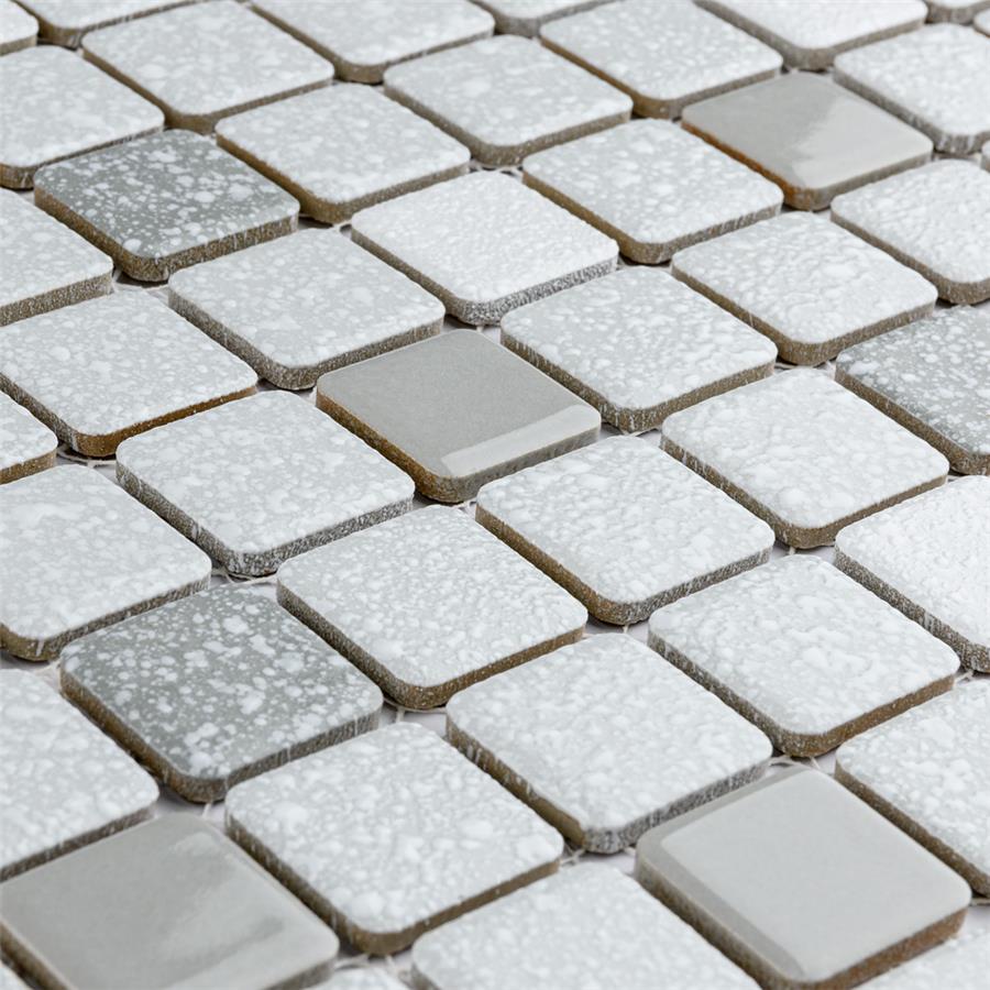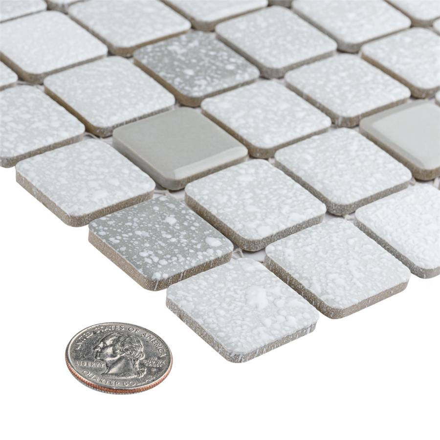Our Crystalline Square Grey 11-3/4″ x 11-3/4″ Porcelain Floor and Wall Mosaic Tile is an innovative twist on the classic mosaic. Featuring a mottled glazed surface, this product is comprised of square shaped chips with a muted grey and white color palette. This slightly textured mosaic creates a classic and versatile look with slightly rounded squares arranged on an interlocking mesh to create a unique and seamless installation. This geometric porcelain mosaic is unique yet simplistic enough to integrate into any design, ranging from traditional style renovations to modern home projects. Its impervious, frost-resistant and ADA compliant features make this an ideal tile for both commercial and residential indoor and outdoor use, including backsplashes, bathrooms, showers, kitchens, patios, and entryways. Tile is the better choice for your space. This tile is made from natural ingredients, making it a healthy choice as it is free from allergens, VOCs, formaldehyde and PVC.