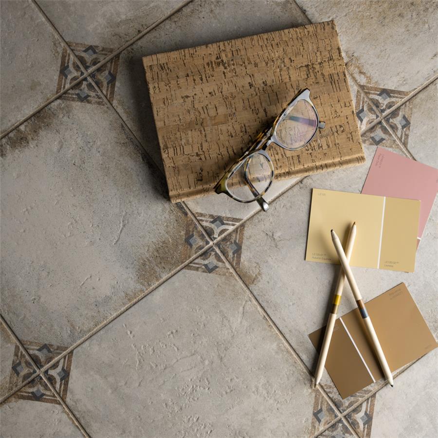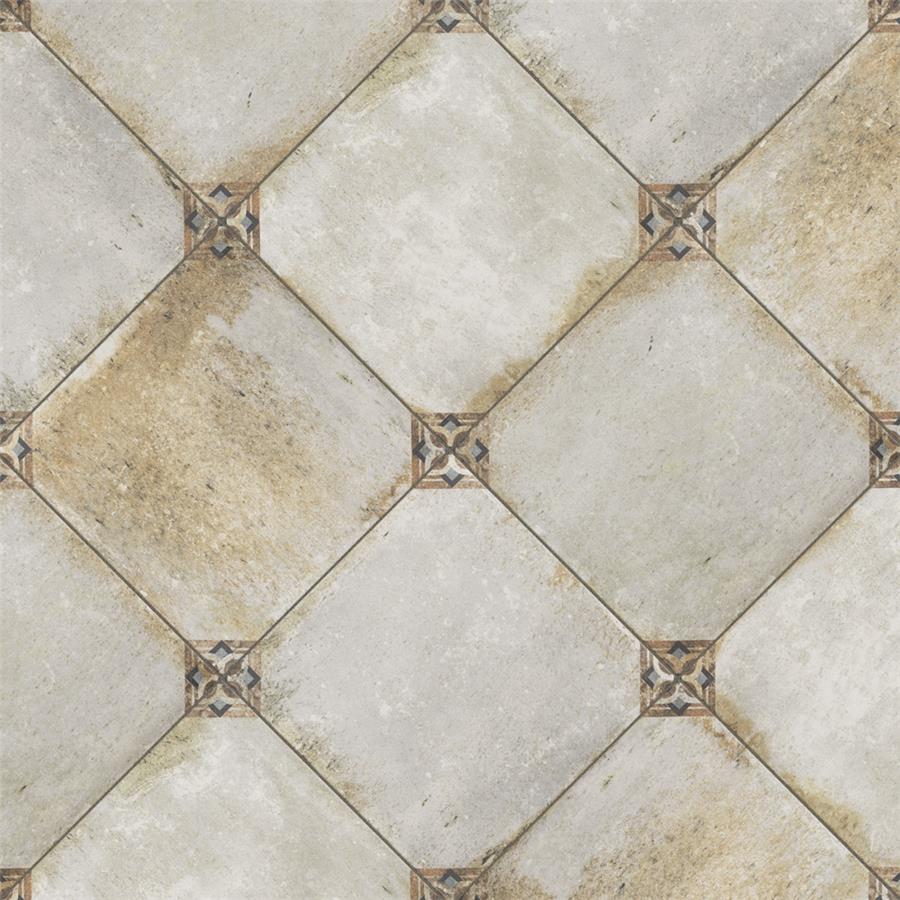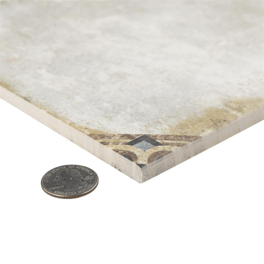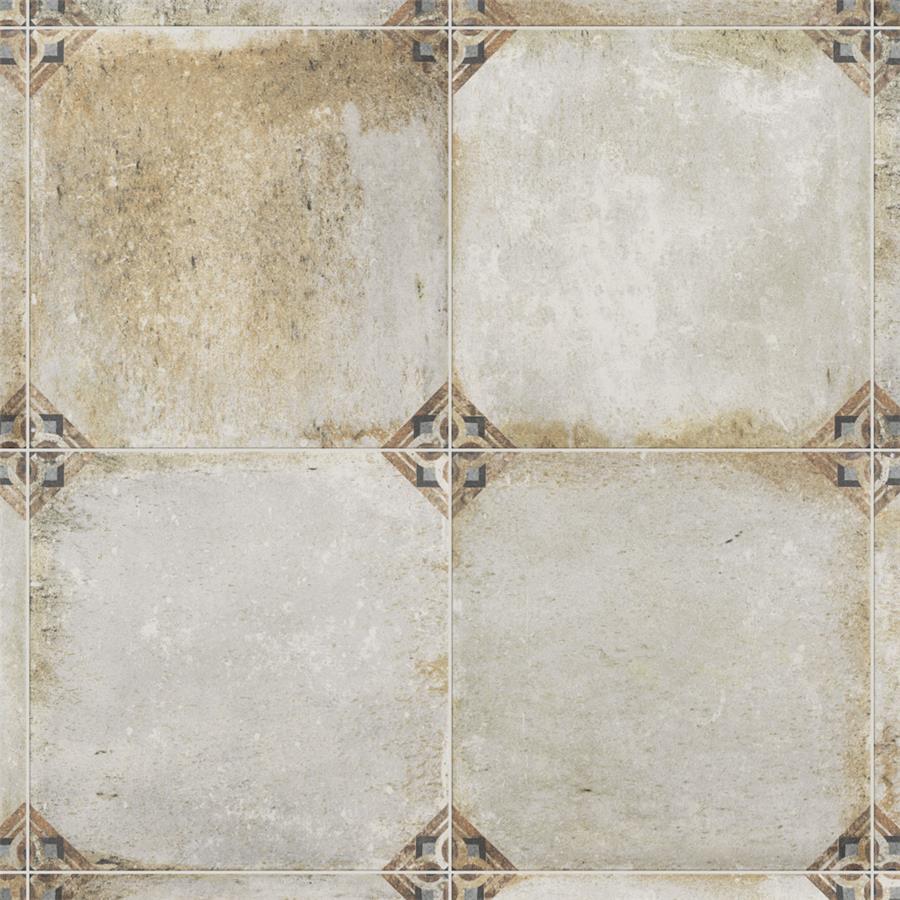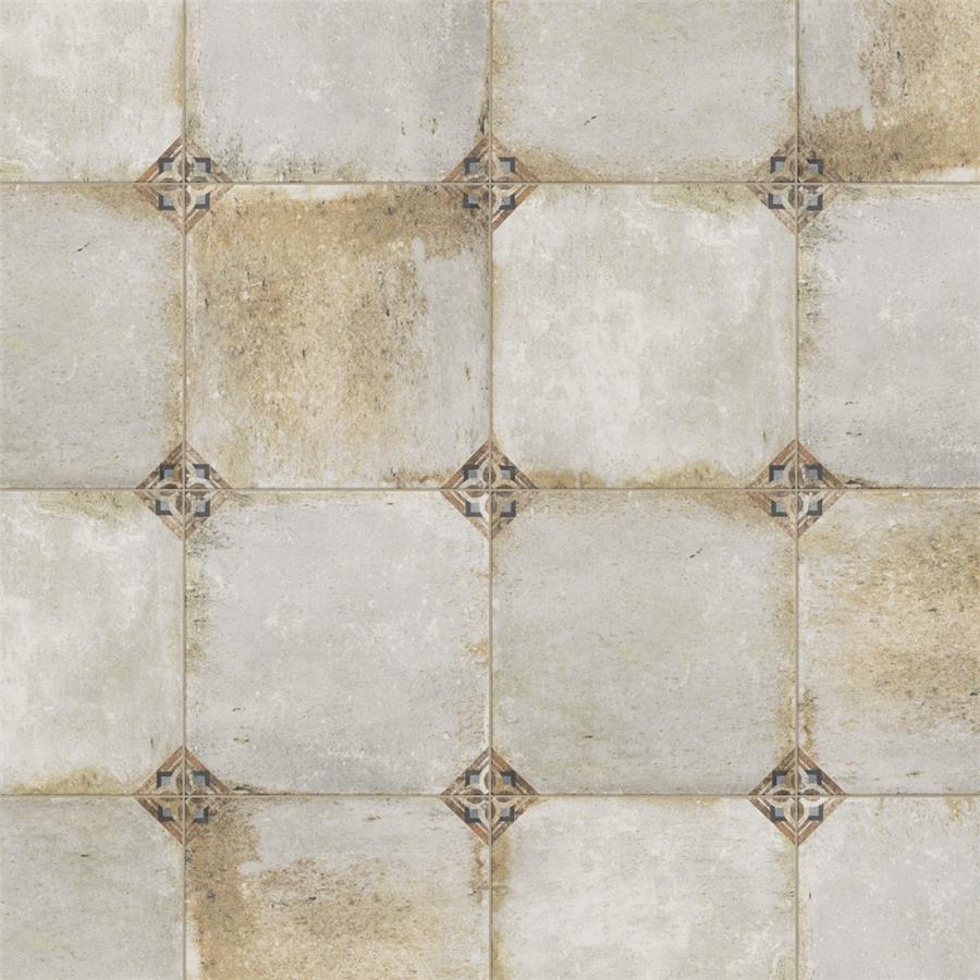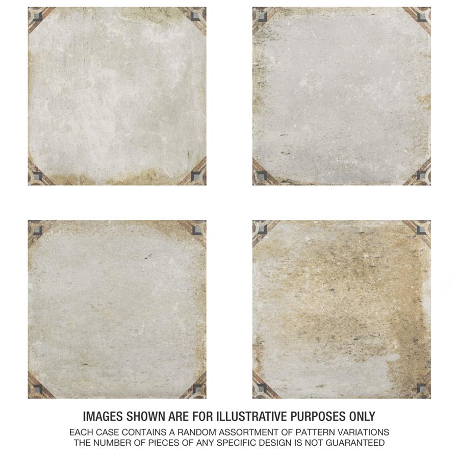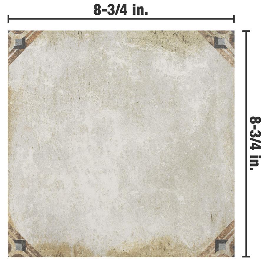 Our D’Anticatto Decor Savona 8-3/4 in. x 8-3/4 in. Porcelain Floor and Wall Tile radiates rustic charm. Mimicking a worn cement appearance, this porcelain tile is a subtle statement piece created by geometric motifs in faded charcoal grey, light grey and copper set on a textured light beige base glaze. With rust colored accents and realistic imitations of scuffs and spots, this encaustic inspired tile evokes a loved, worn and century-old appearance. Available in twenty-five print variations that are randomly scattered throughout each case, the variation throughout each tile mimics an authentic aged appearance. Its impervious, frost-resistant and highly durable features make this tile and ideal choice for both indoor and outdoor commercial and residential installations including backsplashes, kitchens, bathrooms, showers, entryways and patios. This tile is a perfect choice on its own or paired with other products in the D’Anticatto Collection.Tile is the better choice for your space. This tile is made from natural ingredients, making it a healthy choice as it is free from allergens, VOCs, formaldehyde and PVC.
