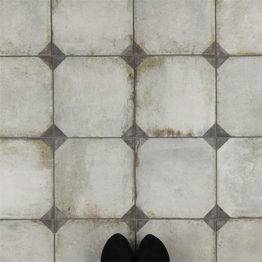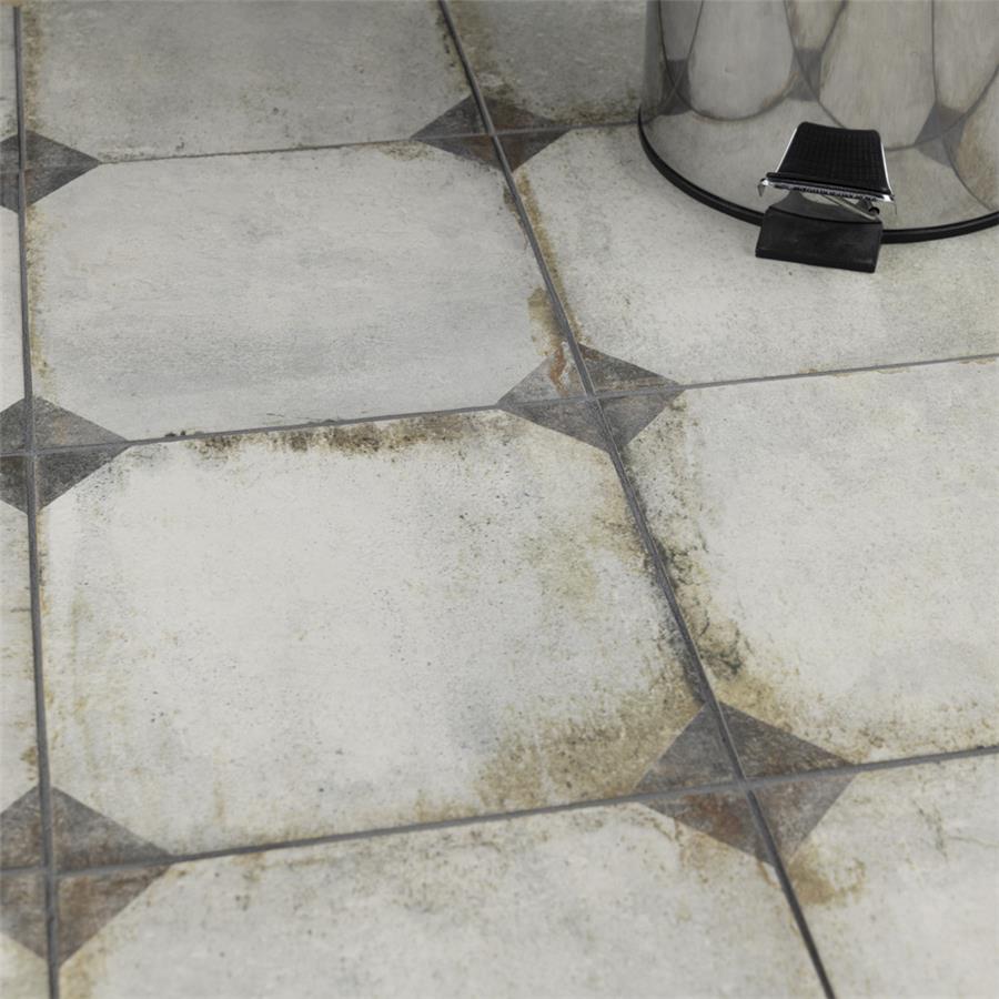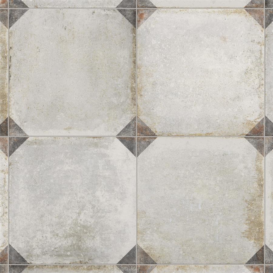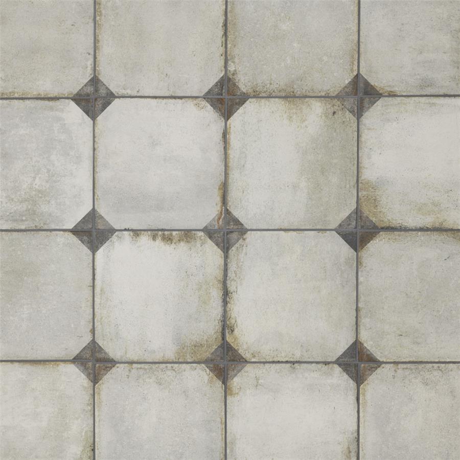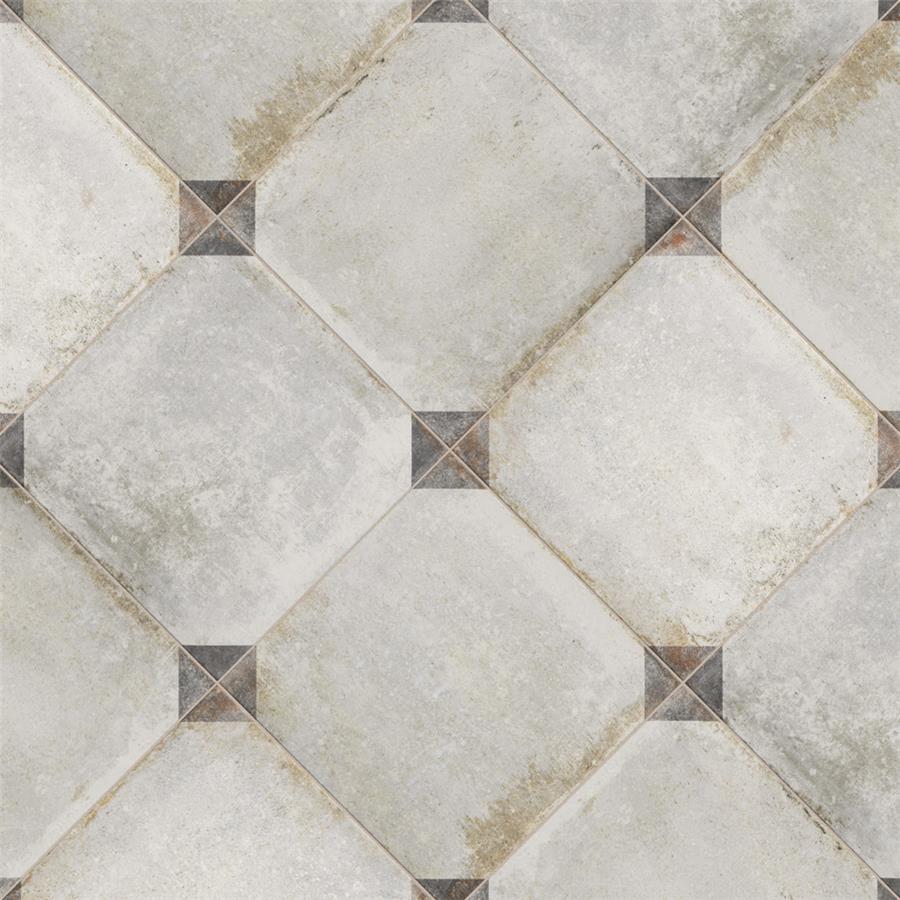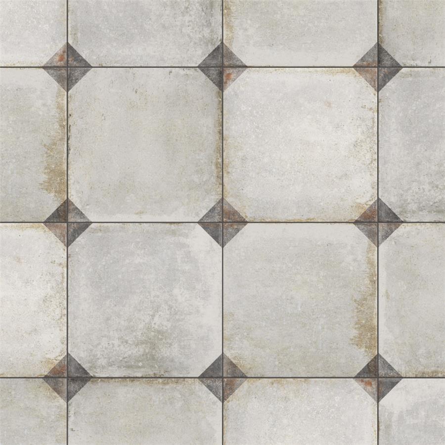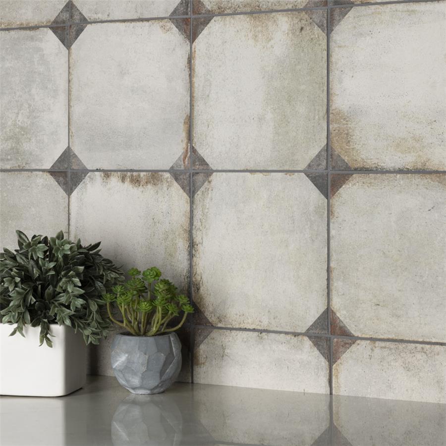 Our D’Anticatto Decor Trapani 8-3/4 in. x 8-3/4 in. Porcelain Floor and Wall Tile radiates rustic charm. Mimicking a worn cement appearance, this porcelain tile is a subtle statement piece created by geometric motifs in faded charcoal grey set on a textured light beige base glaze. With rust colored accents and realistic imitations of scuffs and spots, this encaustic inspired tile evokes a loved, worn and century-old appearance. Available in six print variations that are randomly scattered throughout each case, the variation throughout each tile mimics an authentic aged appearance. Its impervious, frost-resistant and highly durable features make this tile and ideal choice for both indoor and outdoor commercial and residential installations including backsplashes, kitchens, bathrooms, showers, entryways and patios. This tile is a perfect choice on its own or paired with other products in the D’Anticatto Collection.Tile is the better choice for your space. This tile is made from natural ingredients, making it a healthy choice as it is free from allergens, VOCs, formaldehyde and PVC.
