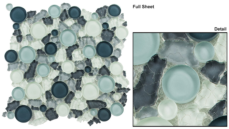 Tile size: Random size circlesSheet size: 12” x 12”Sheet coverage: 1 SQFRows per sheet: N/ATiles per sheet: VariesTile thickness: 5/16: (8mm)Grout Joints: 1/8” (2mm)All tiles are mesh mounted.Due to the variance in installation methods, grout colors, lighting, image variances and computer monitor settings; the images above may not accurately represent the true color of the products after installation.Therefore Glazzio Tiles always recommends that tiles not be purchased from an image of any kind.