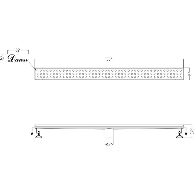 Dawn® Shower Drains are of superior workmanship to ensure the highest quality and are available in various styles to suit the décor of your home. Crafted from 6-, 9-, 11-, 14-, or 18-gauage 304-type stainless steel, Dawn shower drains are durable and long lasting, and offer light to heavy duty solutions with excellent flow capacity. The satin polished finish guarantees smooth surfaces, safe drainage, and high hygiene. They are highly resistant to temperature variations and easy to install in almost any kind of construction project. **The linear drains are all handcrafted.**• Brand: Dawn®• 14 Gauge Premium Grade 304 Stainless Steel• Finish: Polished Satin• Drain: 2″• Contemporary Pattern• Limited Life Time Warranty• Strongly recommend to install the shower drain with Dawn shower drain base