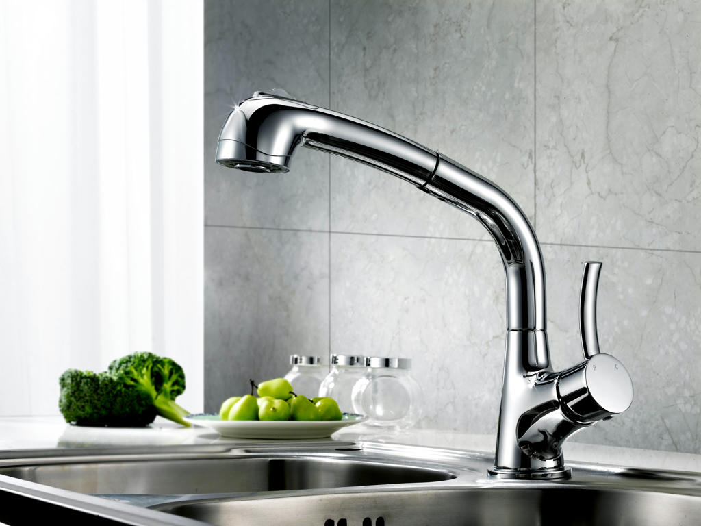 Dawn® Single-lever pull-out spray kitchen faucet, Brushed Nickel