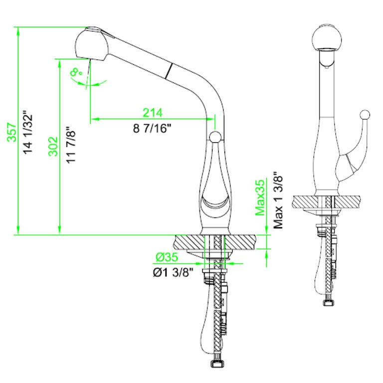 Dawn® Single-lever pull-out spray kitchen faucet, Chrome