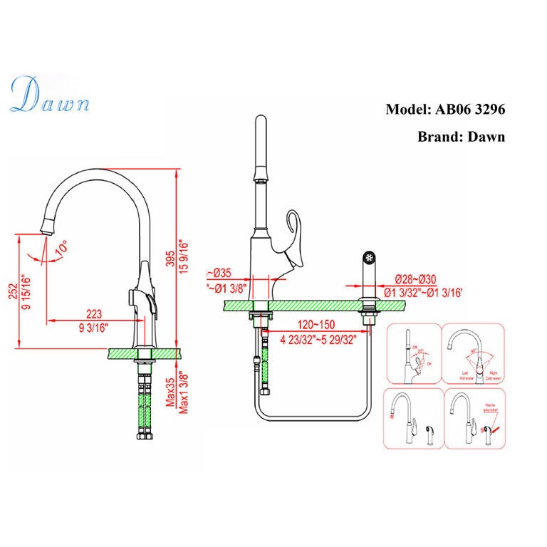 Dawn® faucets are made of solid brass and plated with chrome or brushed nickel to provide reliability and durability. They come in classic and modern styles with various functions to suit and enhance the visual landscape of a home. Constructed with ceramic disc cartridges, the faucets are durable over the long run in a broader variety of water conditions.• Solid Brass Construction• Volume & Temperature Control• Dual Control Operation• Ceramic Disk Cartridges• Flexible Supply Lines• cUPC Certified• Compliant with California Lead Plumbing Law• Compliant with Drinking Water System Health Effects• Limited Lifetime Warranty