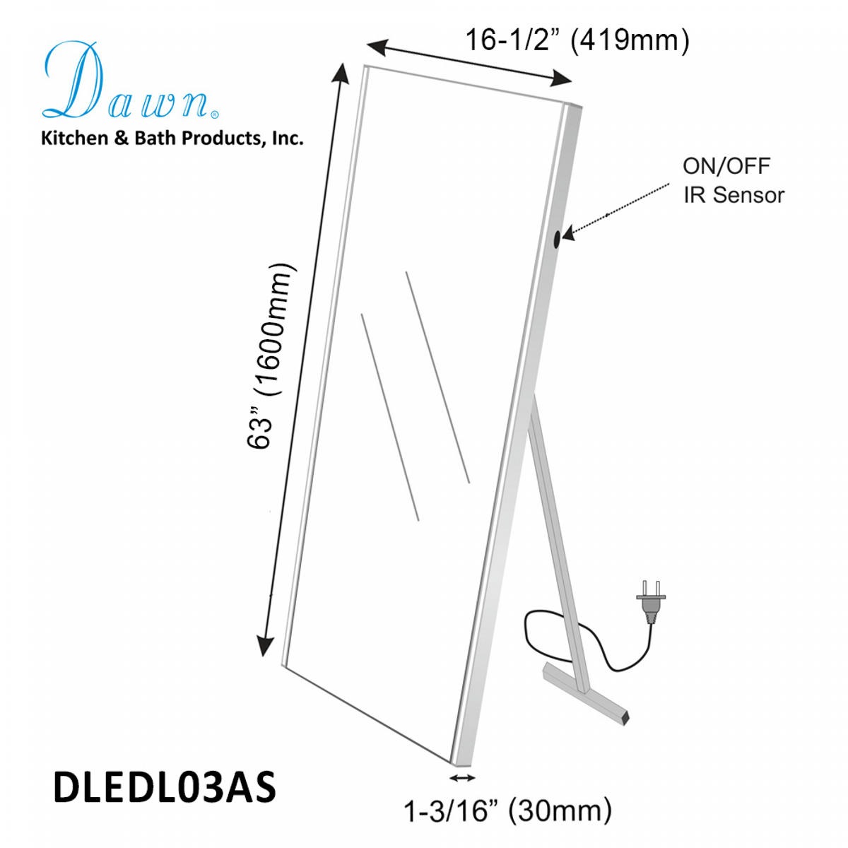 • Dawn® LED Back Light Free Standing Mirror with Matte Aluminum Frame and IR Sensor