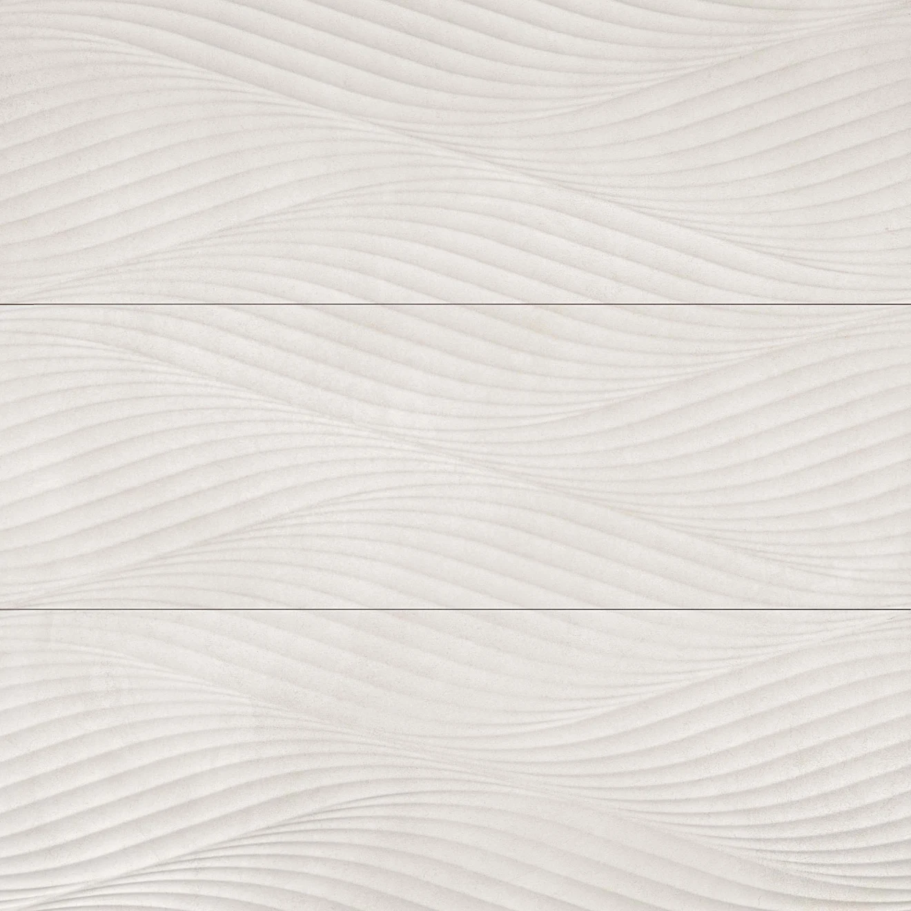 Modern shapes meet soothing hues of glazed ceramic with the Donna Collection. This collection brings simplicity and elegance to your space with matte finished 13in.x40in. field tiles or 13in.x40in. deco tiles. Each wall tile is available in plain or wave deco. Shades offered include white, sand, silver, or beige. The Donna Collection is made in Spain.