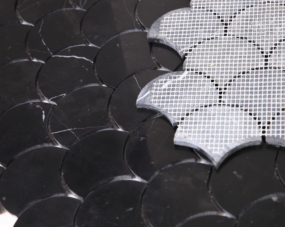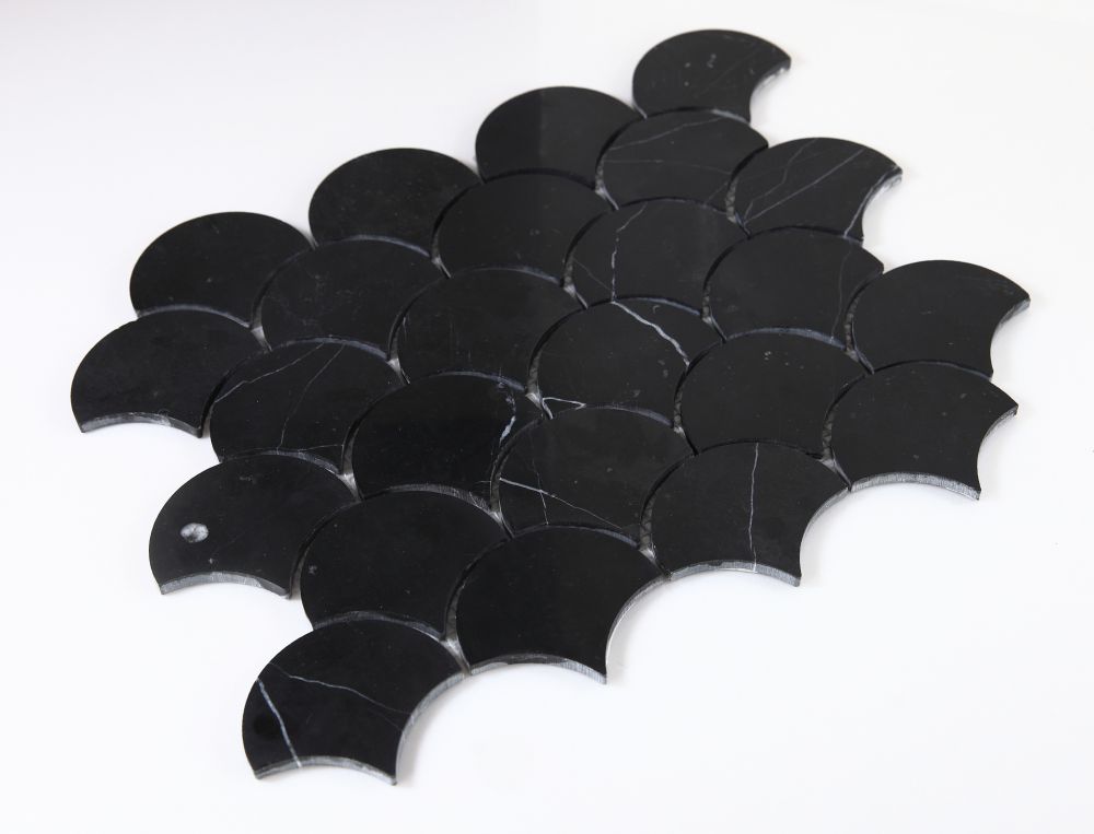 Product Sold By The SheetDragon Scale series-Dragon Scale Marquina 10.5x13The mosaic is made of Nero Marquina marble honed finishWARNING: This product can expose you to chemicals including crystalline silica (airborne particles of respirable size) in dust created during fabrication/installation if the product is dry cut/ground or pulverized, which are known to the State of California to cause cancer. For more information, go to https://www.p65warnings.ca.gov/.