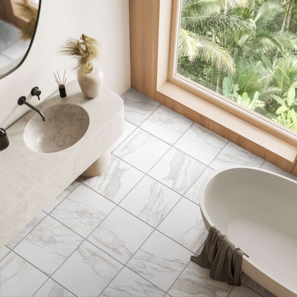 Capturing the appearance of a marble look, our Ella Hill Calacatta Ceramic Floor and Wall Tile features a smooth, matte finish, making it a great choice for your space. With its semi-vitreous features, this white square tile is an ideal selection for indoor commercial and residential installations, including kitchens, bathrooms, backsplashes, showers, hallways, entryways and fireplace facades. This tile is a perfect choice on its own or paired with other products in the Ella Hill Collection. Tile is the better choice for your space!