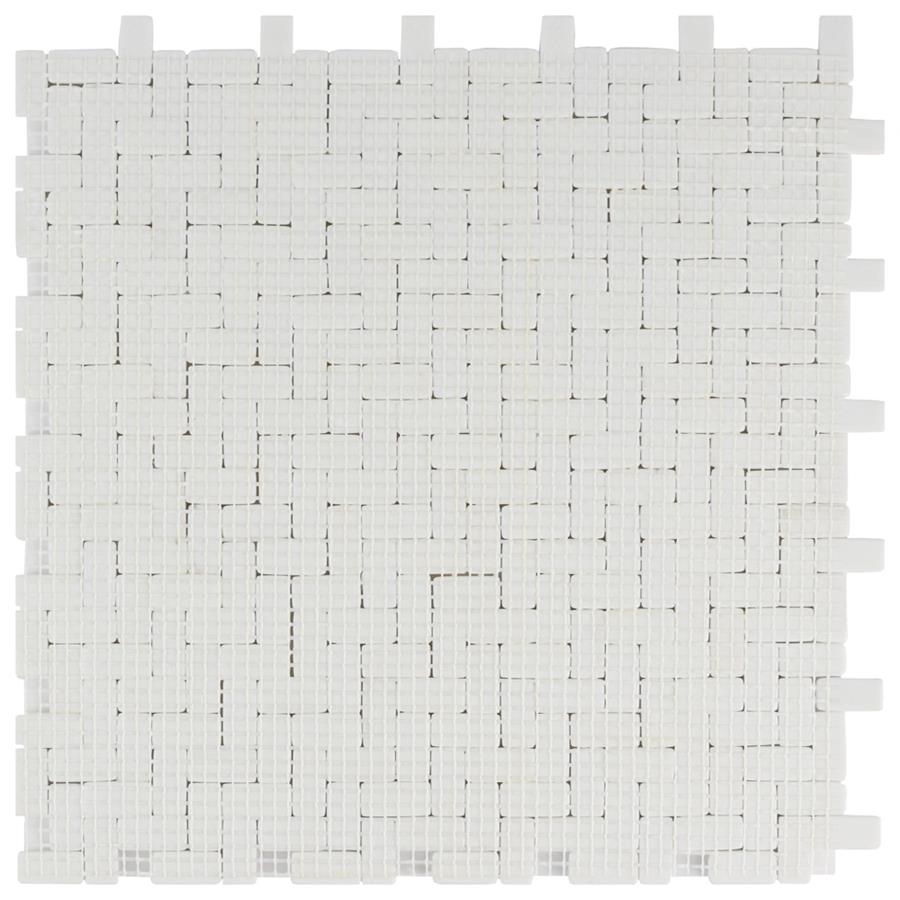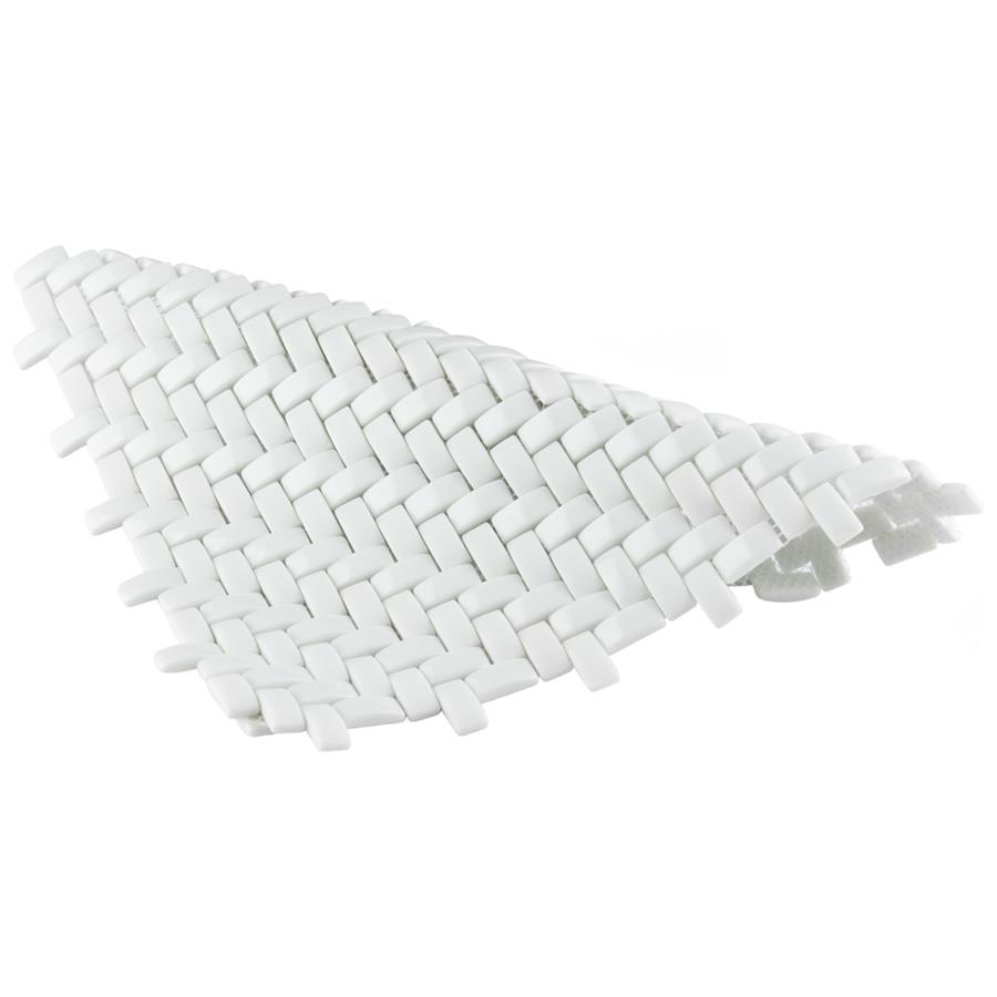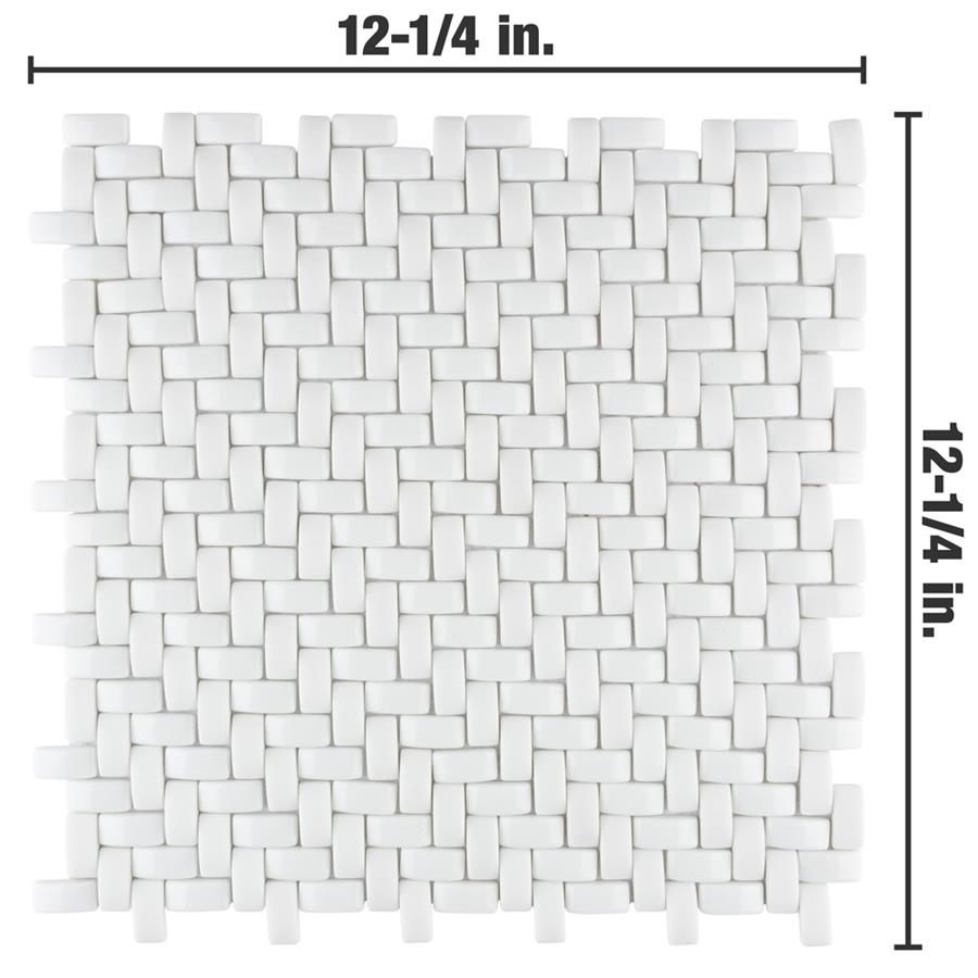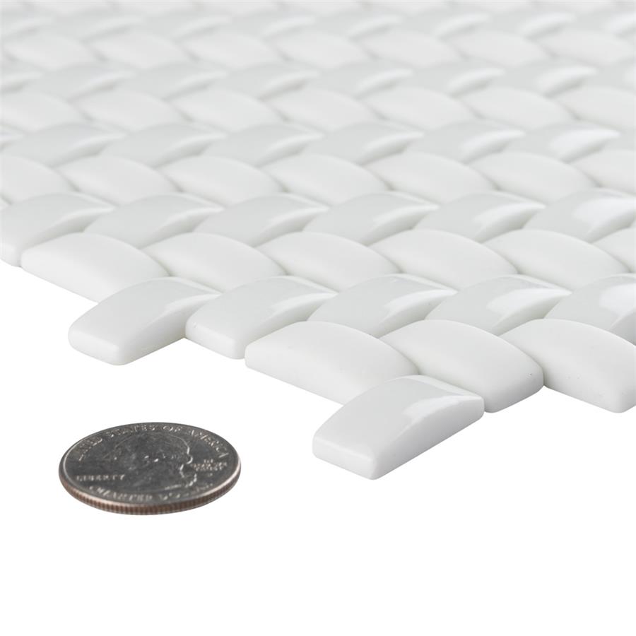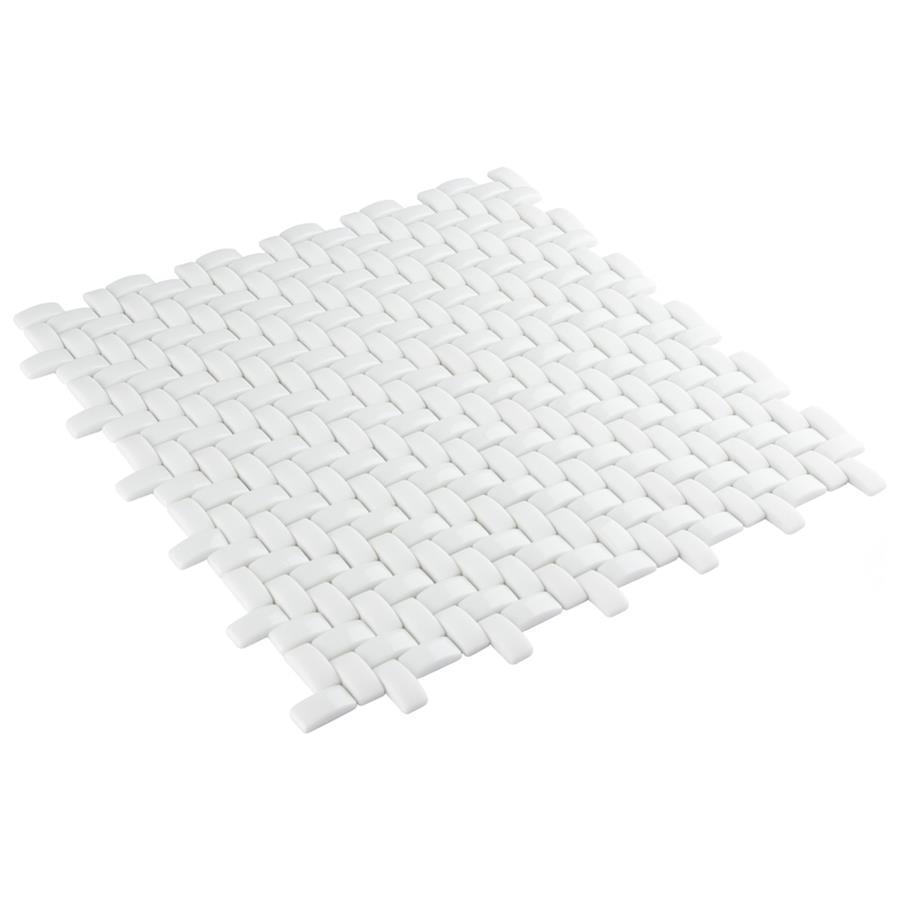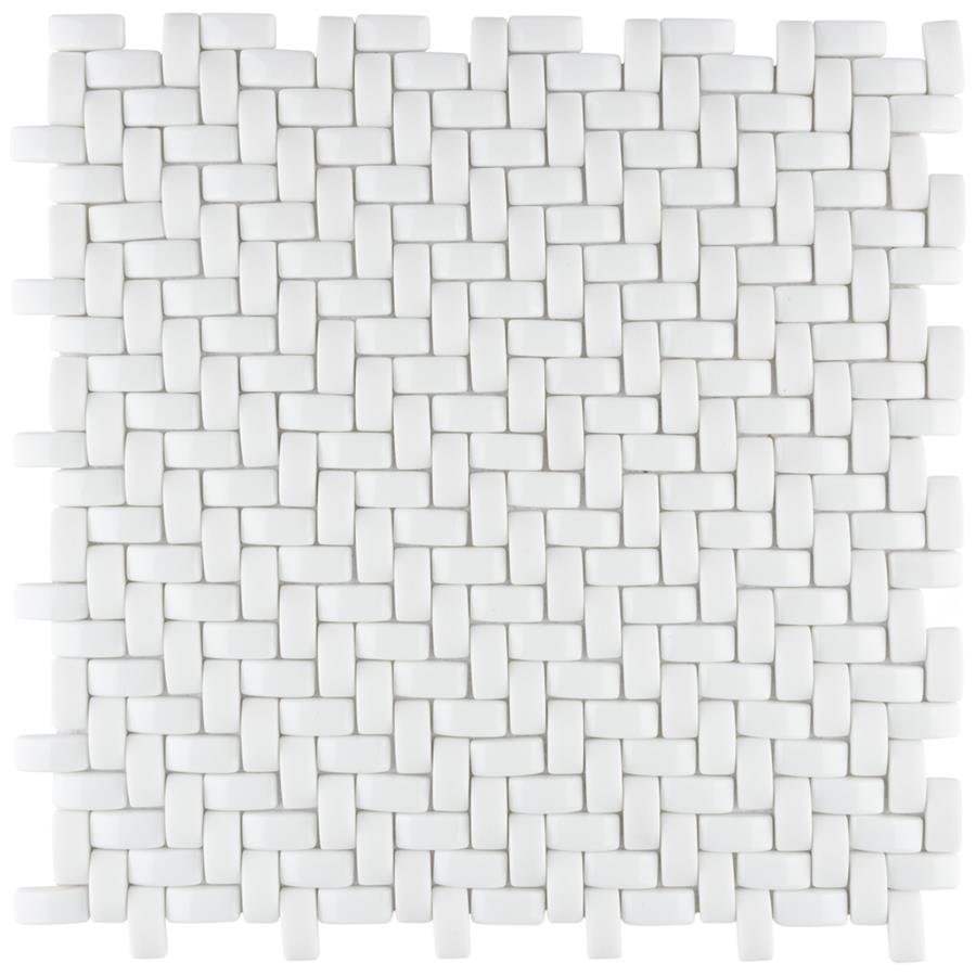 The SomerTile Expressions Weave White 12-1/4 in. x 12-1/4 in. x 7 mm Glass Mosaic Tile. The white basket-weave shaped pieces feature a stunning mixed finish for added dimension. With characteristics of unglazed porcelain tile, this mosaic is impervious and frost resistant. These mesh-mounted tiles offer a high durability rating that is great for any interior or exterior space.Tile is the better choice for your space. This tile is made from natural ingredients, making it a healthy choice as it is free from allergens, VOCs, formaldehyde and PVC.