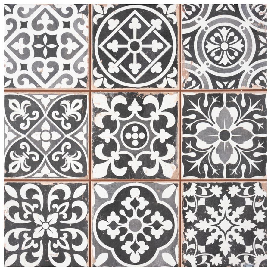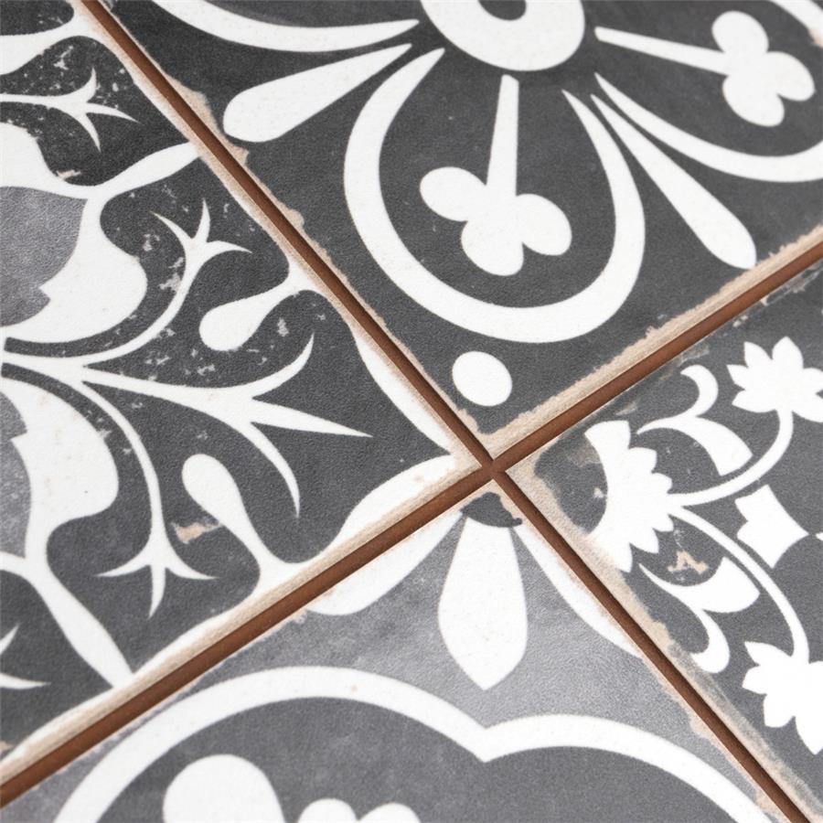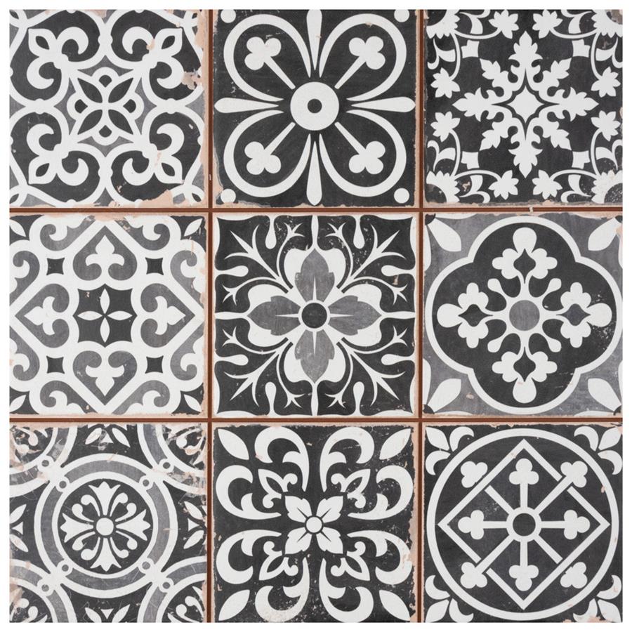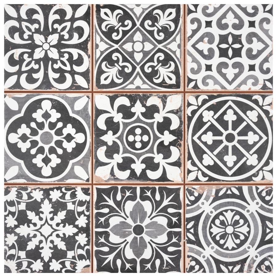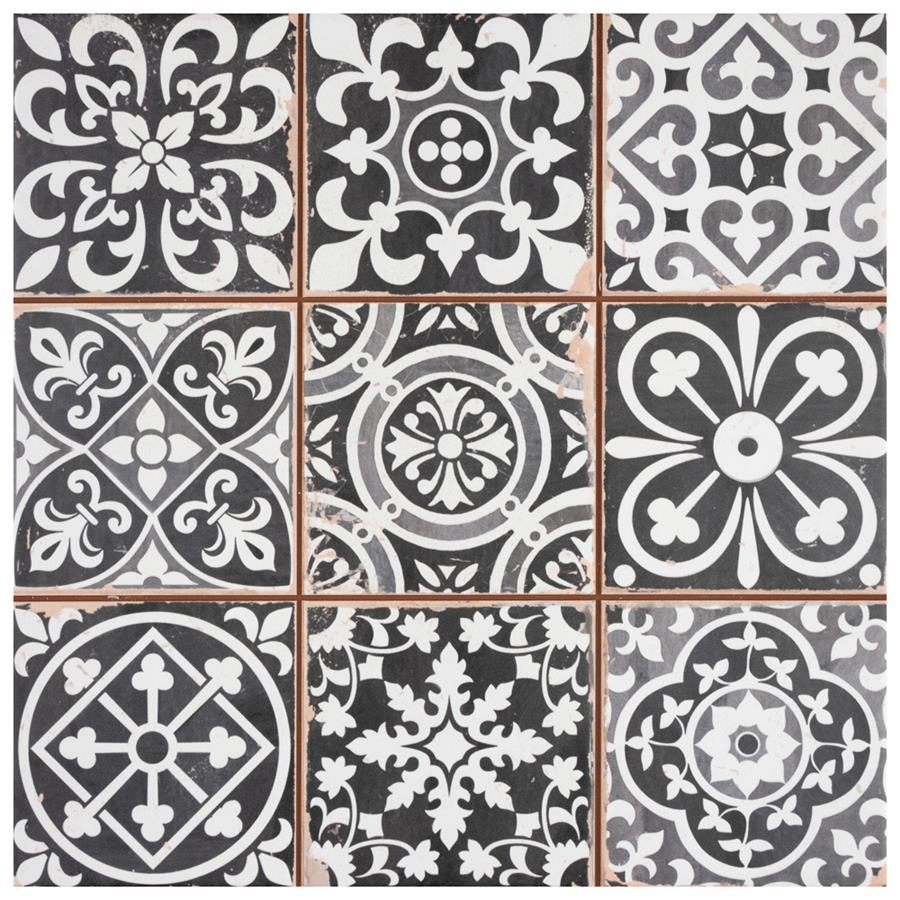 It is easy to picture sun-drenched streets of Spain when looking at our Faenza Nero 13 in. x 13 in. Ceramic Floor and Wall Tile. Save time and labor spent arranging smaller square tiles and instead install these durable ceramic slabs, which have nine squares separated by scored grout lines. This breathtaking black glaze features a collection of encaustic-inspired designs. Imitations of the scuffs and spots that are the marks of well-loved, worn, century-old tile and the rich red tones peeking through are the perfect contrast to the faded grays and black. These rustic scuffs and spots convince that this tile is truly aged. There are 3 different variations of scuffs andF pattern arrangements available that are randomly scattered throughout each case, offering a sporadic patchwork look. Designed by interior architect and furniture designer Francisco Segarra, this tile is a true reflection of vintage industrial design. The scored grout lines can be grouted with the color of your choice to further customize your installation.