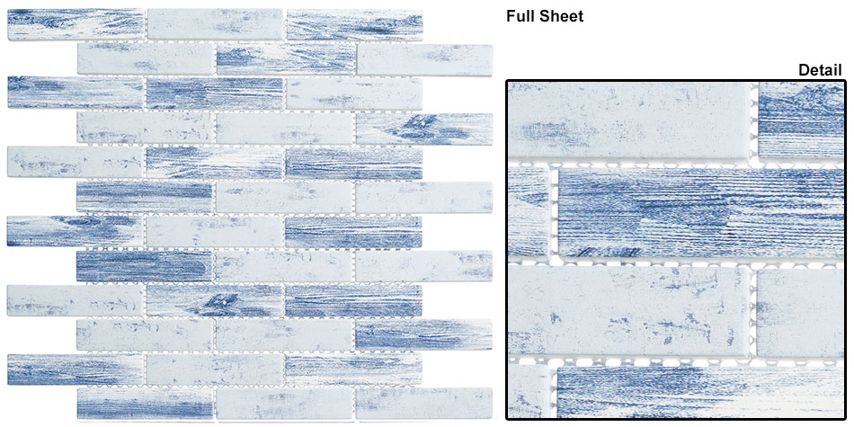 Tile Size: 7/8 ” x 3 7/8″Sheet Size: 11 ¾” x 11 3/4″Sheet Coverage: .96 SQFRows Per Sheet: 12Tiles Per Sheet: 36Cut into Borders: Every 2 rowsTile Thickness: 5/16″ (8mm)Grout Joint: 1/16″ (2mm)Mesh Mounted: YesDue to the variance in installation methods, grout colors, lighting, image variances and computer monitor settings; the images above may not accurately represent the true color of the products after installation.Therefore Glazzio Tiles always recommends that tiles not be purchased from an image of any kind.