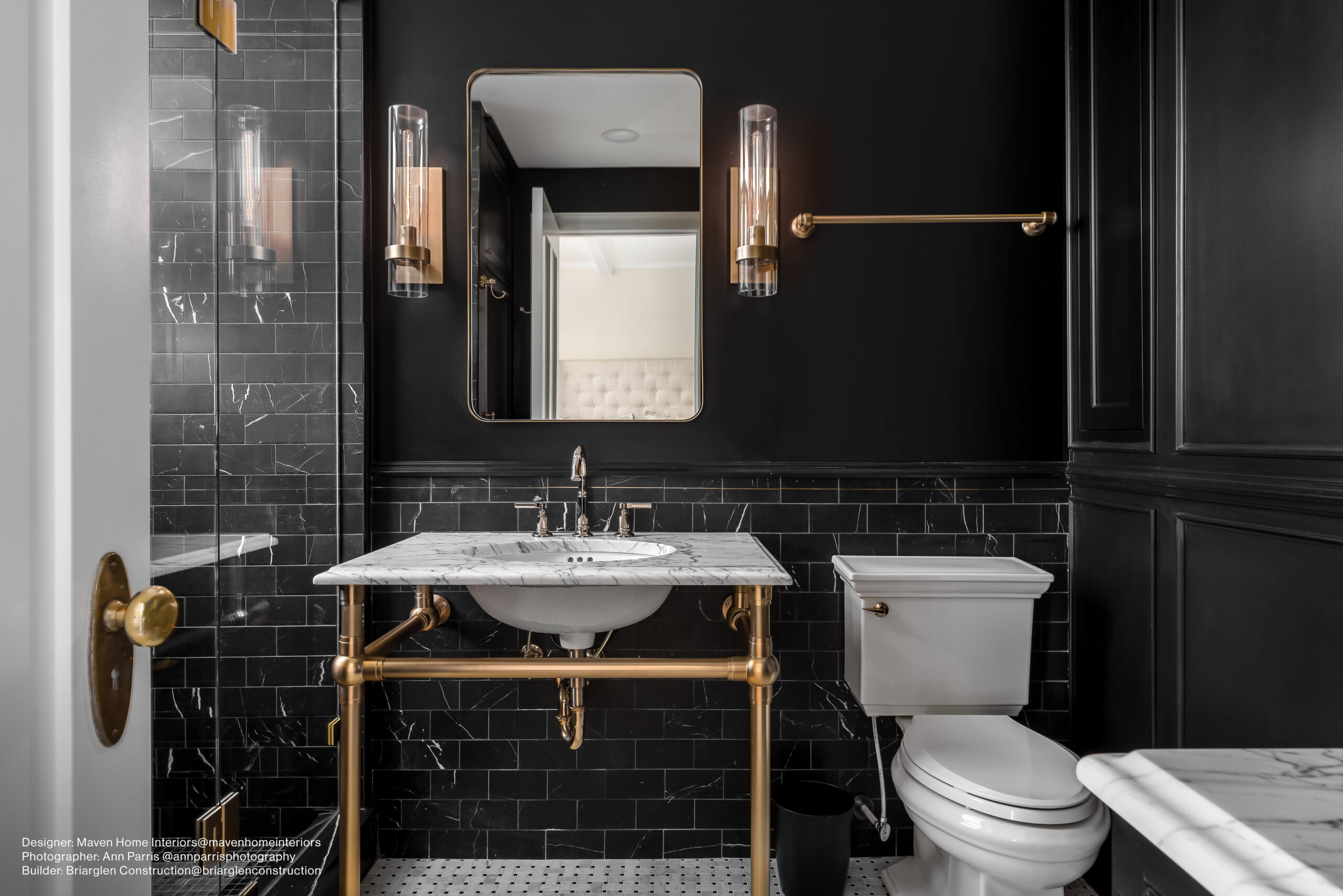 Ferrara 3″ x 6″ Honed Marble Decorative Tile with Brass in Nero