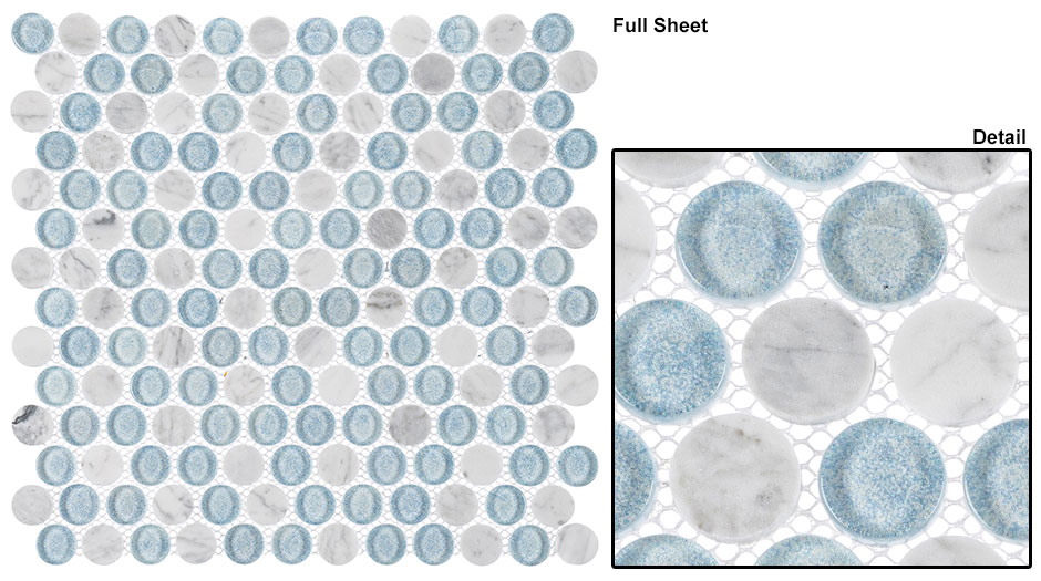 Tile Size: Penny roundsSheet Size: 11 15/16″ x 12 1/16″Sheet Coverage: 1 SQFRows per Sheet: 14Tiles per Sheet: 168Cut into Borders: Every 2 rowsTile Thickness: 6 mmGrout Joint: 1/16″ (2 mm)Mesh Mounted: YesDue to the variance in installation methods, grout colors, lighting, image variances and computer monitor settings; the images above may not accurately represent the true color of the products after installation.Therefore Glazzio Tiles always recommends that tiles not be purchased from an image of any kind.