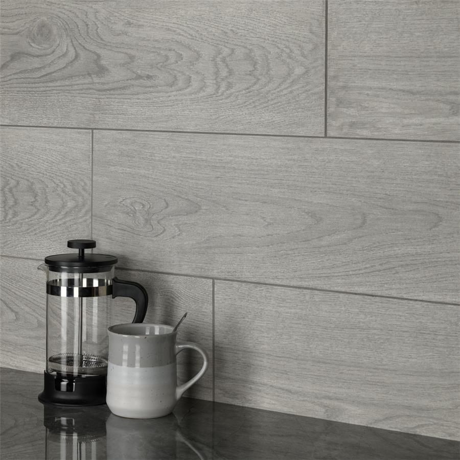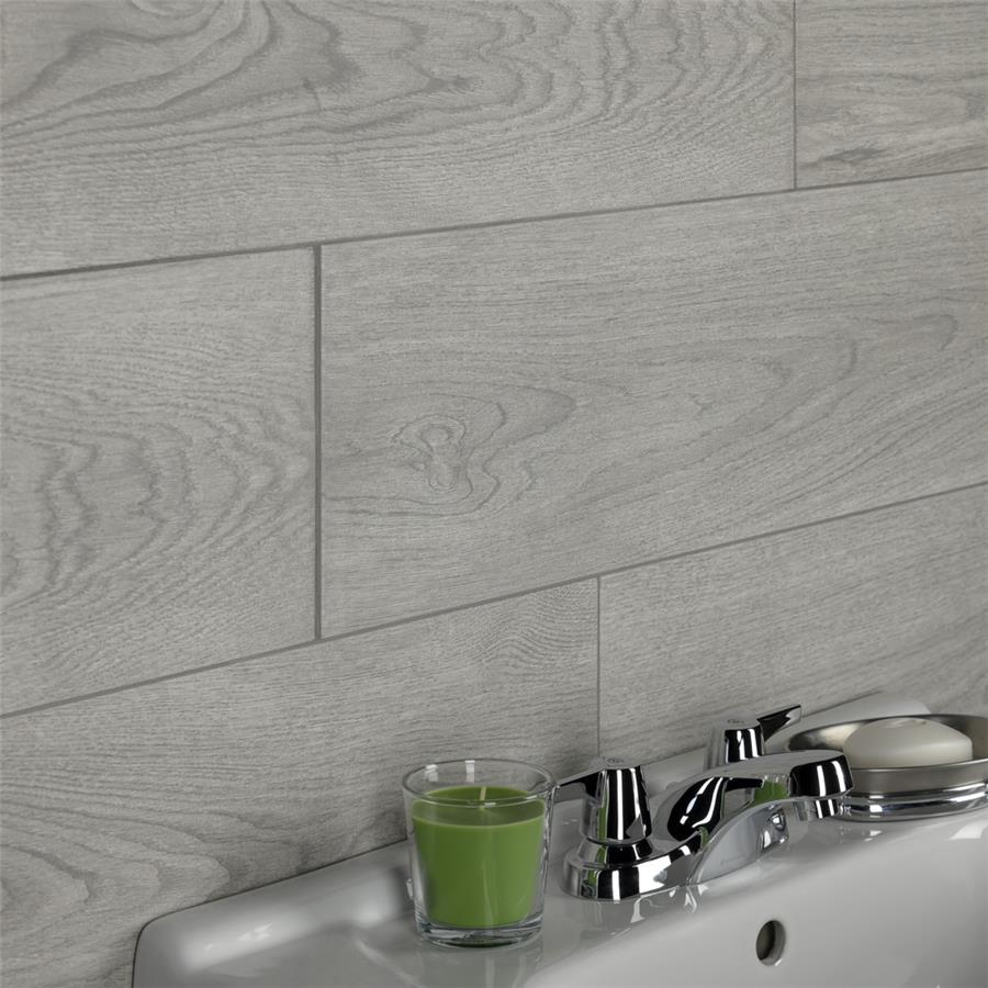 The SomerTile Fronda Perla 7-7/8 in. x 23-5/8 in. Ceramic Floor and Wall Tile is the latest breathtaking addition to our collection of wood-look tiles. Crafted in Spain, the ash grey glaze features a meticulously detailed grain accented in darker grey. To add further contrast and depth, the tile has subtle bumps and grooves that echo the texture of real wood. This tile is slip-resistant for ADA compliance and great for any customer looking to bring a rustic touch to their interiors.