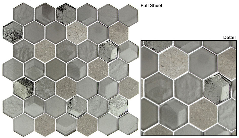 Tile size: 2” HexagonSheet size: 12” x 11 7/8”Sheet coverage: 0.99 SFTiles per sheet: 42Tile thickness: 1/4″ (6mm)Grout joints: 1/8″ (4mm)This product is mesh mountedDue to the variance in installation methods, grout colors, lighting, image variances and computer monitor settings; the images above may not accurately represent the true color of the products after installation.Therefore Glazzio Tiles always recommends that tiles not be purchased from an image of any kind.** Installation of this product in a wet application must be set with epoxy mortar and epoxy grout.*** In order to avoid stains and discoloration as well as to prevent grout from getting into the pores of the tile; all Crackled Glass, Crackled Glaze and Stone products should always be sealed prior to grouting.