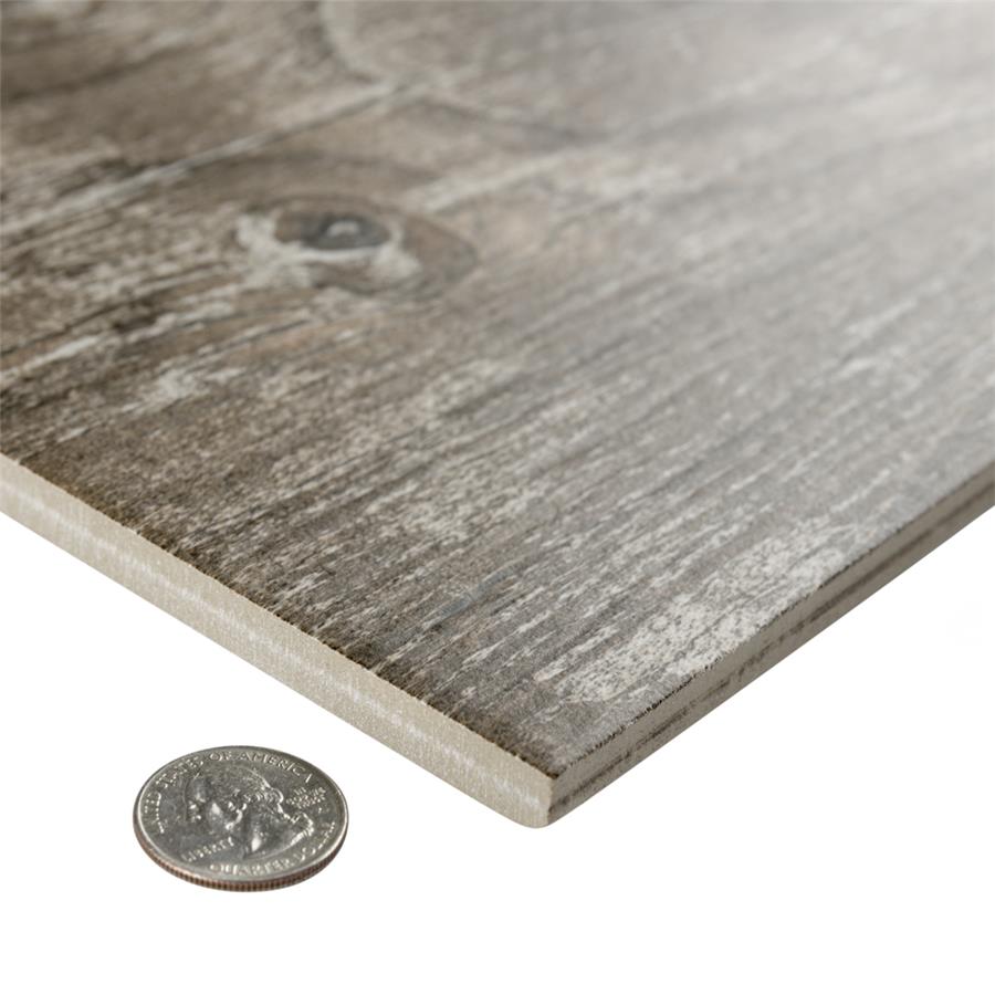 Reminiscent of reclaimed wooden planks, our Gaugin Catan Shadow 8-1/2” x35-1/2” Porcelain Floor and Wall Tile has an antiquated appearance that offers character and unmistakable style to any space. This large format rectangle tile features stunningly realistic woodgrains and striations in faded brown and beige tones reminiscent of worn paint. To add further contrast and depth, the tile has subtle bumps, grooves and signs of distress that echo the texture and look of real wood. Available in 17 print variations, that are randomly scattered throughout each case, this porcelain tile offers a one-of-a-kind look. Its impervious and frost-resistant features make this an ideal choice for indoor and outdoor residential installations including kitchens, bathrooms, backsplashes, showers, hallways, entryways, patios, and fireplace facades. Tile is the better choice for your space. This tile is made from natural ingredients, making it a healthy choice as it is free from allergens, VOCs, formaldehyde, and PVC.Try out our grout test below to determine which grout color suits your design preferences.
