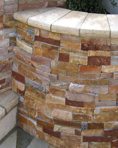 Golden White Stacked Stone panels are crafted from split face natural quartzite. The soft grays, warm golds, and creams contrast beautifully against the rich red tones. Stacked Stone panels are suitable for a variety of projects including interior accent walls and fireplace surrounds, as well as a variety of exterior projects including cladding, dividing walls, and planter boxes. Matching corners are available to finish off projects.