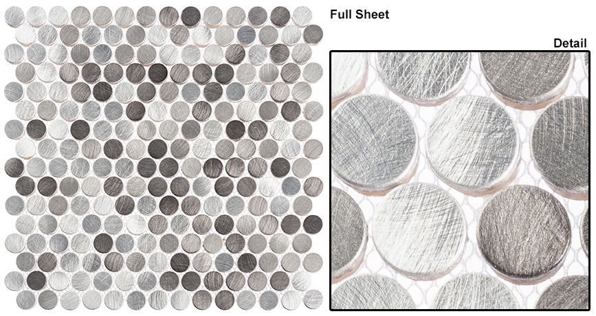 Tile Size: ¾” penny roundSheet Size: 11 4/5″ x 11 4/5″Sheet Coverage: .97 SQFRows Per Sheet: 16Tiles Per Sheet: 224Cut into Borders: Every 2 rowsTile Thickness: 5/16″ (8mm)Grout Joint: 1/16″ (2mm)Mesh Mounted: YesDue to the variance in installation methods, grout colors, lighting, image variances and computer monitor settings; the images above may not accurately represent the true color of the products after installation.Therefore Glazzio Tiles always recommends that tiles not be purchased from an image of any kind.