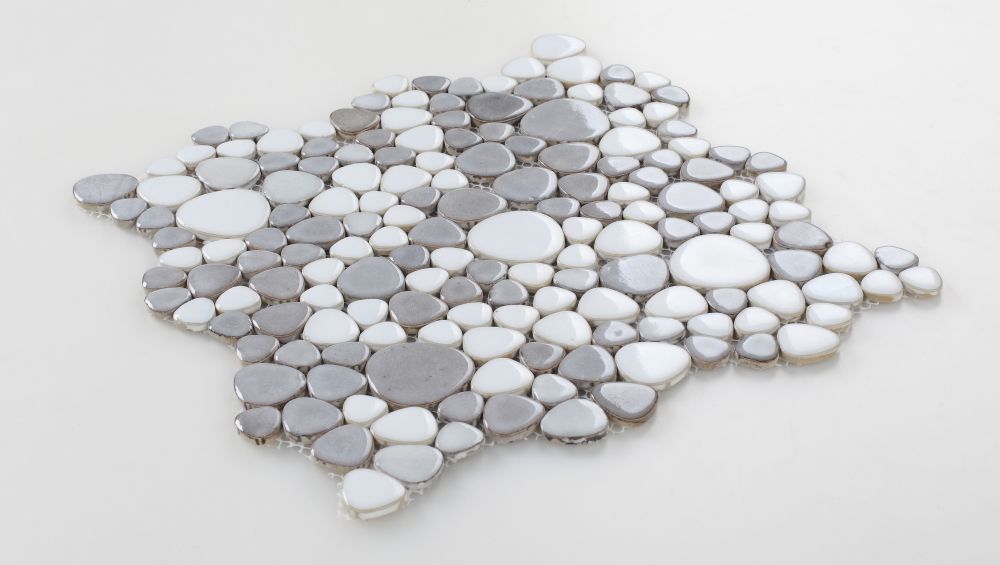 Product Sold By The SheetPool Rated for use in Swimming PoolsGrowing Dusk 11.5×11.5 – A mix of grey and white porcelain in a rounded triangular pattern.Suggested Grout Color: Bostik Trucolor White H152WARNING: This product can expose you to chemicals including crystalline silica (airborne particles of respirable size) in dust created during fabrication/installation if the product is dry cut/ground or pulverized, which are known to the State of California to cause cancer. For more information, go to https://www.p65warnings.ca.gov/.