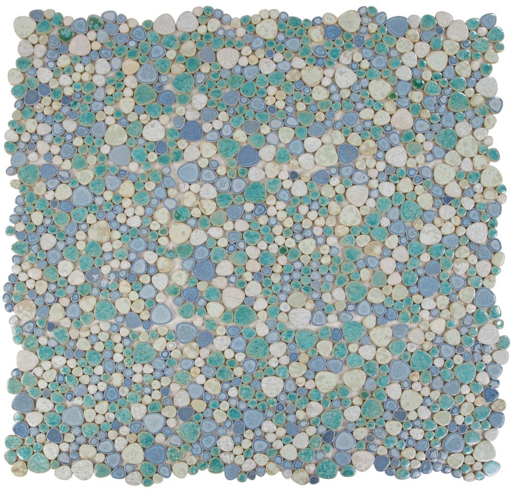 Product Sold By The SheetPool Rated for use in Swimming PoolsGrowing Sea Pebble 11.5×11.5 – High polished, hand-made, heart-shaped porcelain pieces with a blend of white, blue and green colors.Suggested Grout Color: TBDWARNING: This product can expose you to chemicals including crystalline silica (airborne particles of respirable size) in dust created during fabrication/installation if the product is dry cut/ground or pulverized, which are known to the State of California to cause cancer. For more information, go to https://www.p65warnings.ca.gov/.