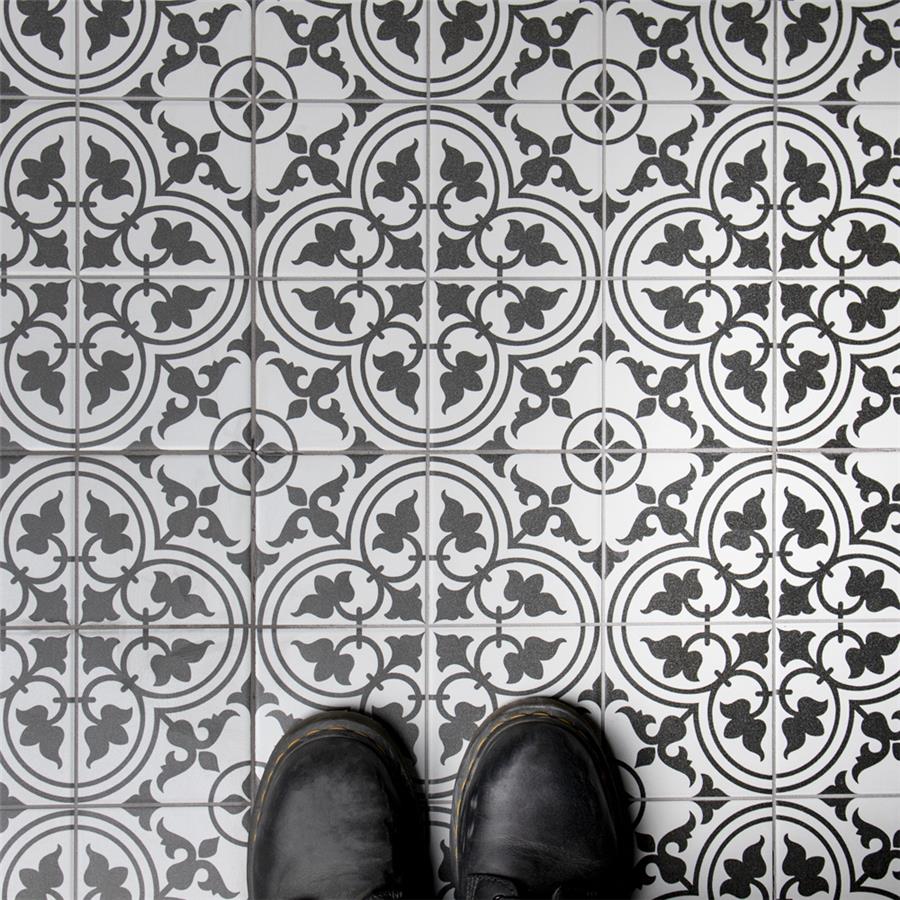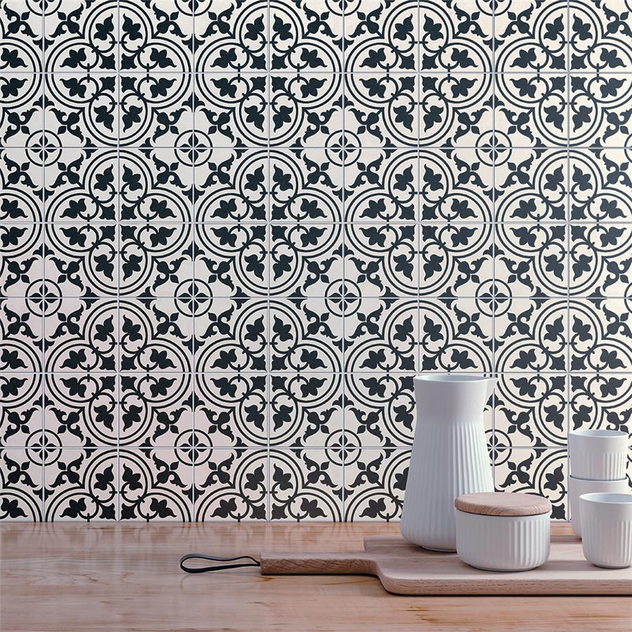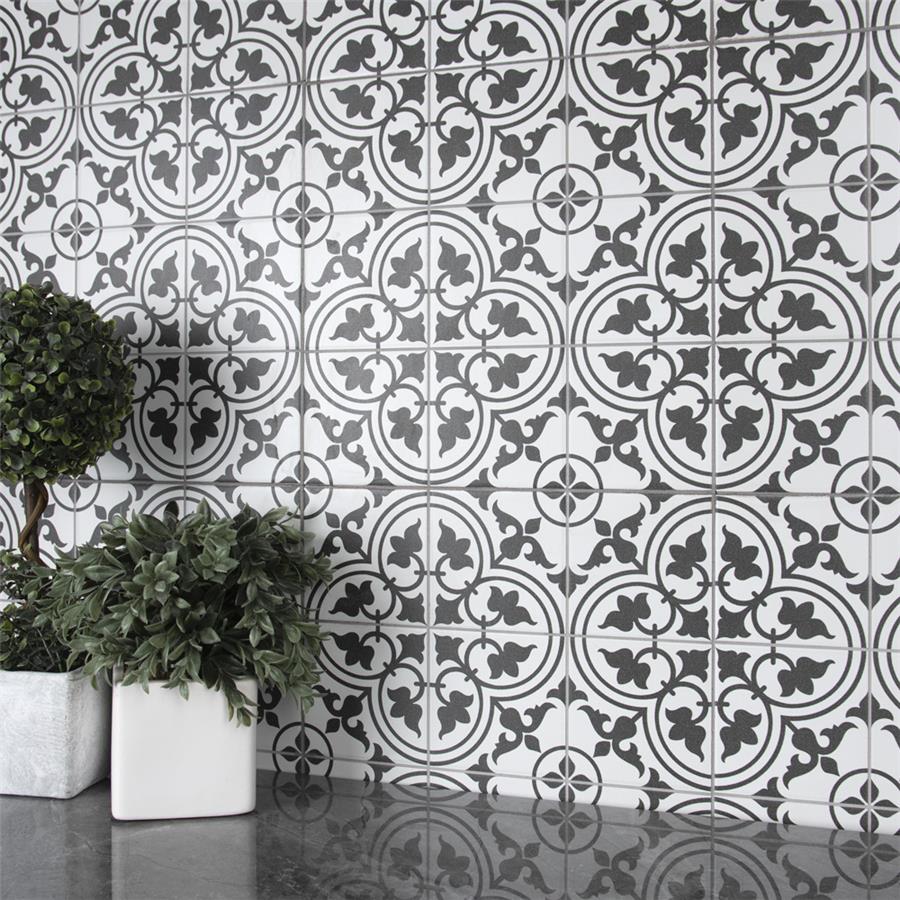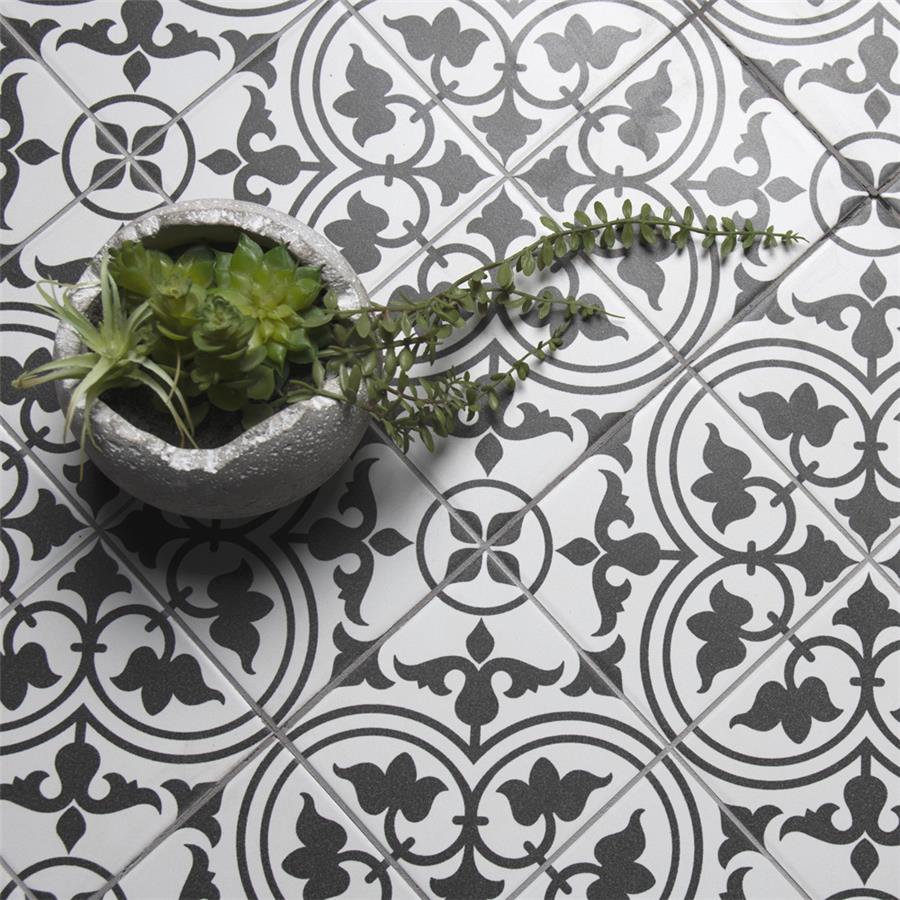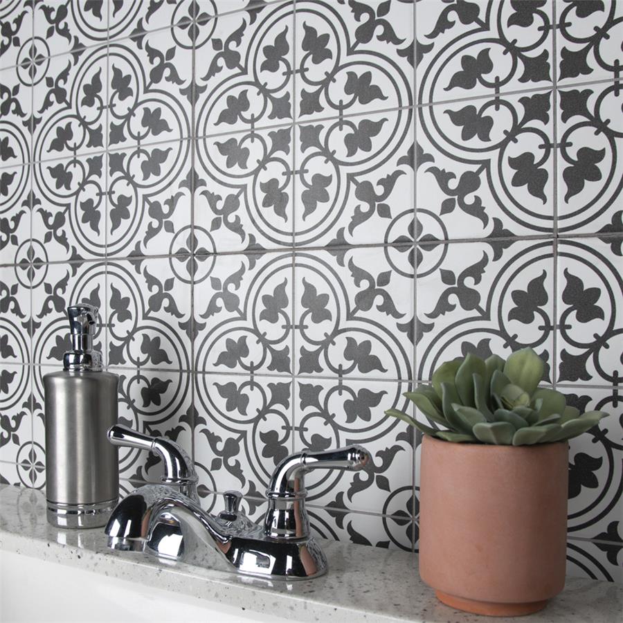 Our Harmonia Classic White 13 in. x 13 in. Ceramic Floor and Wall Tile creates the look of a stunning leading-edge mosaic-like design with the harmonious, easy installation of a square tile. Inspired by our best-selling Arte White, this ceramic encaustic-inspired tile similarly features floral old-world patterns in rich charcoal black that frames dueling arcs in the center, offering subtle contrast and dimension to the decoration. Set on the highest-quality snow white base glaze, the contrasting design features a weathered, speckled look, replicating the beauty of its cement muse. The floral, geometric pattern blends into virtually any design theme, making this an exceptional product for modern installations and historic renovations. Save time and labor spent arranging mosaic sheets and instead install these durable ceramic slabs, which have squares separated by scored grout lines. The scored grout lines can be grouted with the color of your choice to further customize your installation. Its glazed and durable features make it an ideal choice for both commercial and residential indoor installations including kitchens, bathrooms, backsplashes, showers, and entryways. Tile is the better choice for your space. This tile is made from natural ingredients, making it a healthy choice as it is free from allergens, VOCs, formaldehyde and PVC.