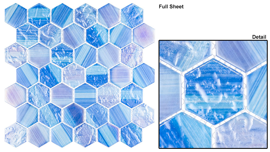 Tile Size: 2″ HexSheet Size: 11 13/16″ x 11 7/8″Sheet Coverage: 0.97 SQFRows per Sheet: 7Tiles per Sheet: 42Cut into Borders: Every 2 rowsGrout Joint: 1/16″ (2 mm)Mesh Mounted: YesDue to the variance in installation methods, grout colors, lighting, image variances and computer monitor settings; the images above may not accurately represent the true color of the products after installation.Therefore Glazzio Tiles always recommends that tiles not be purchased from an image of any kind.
