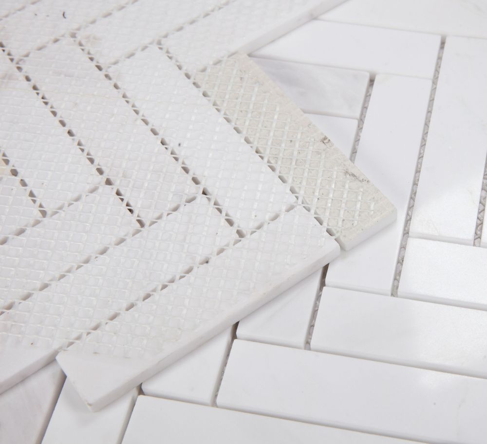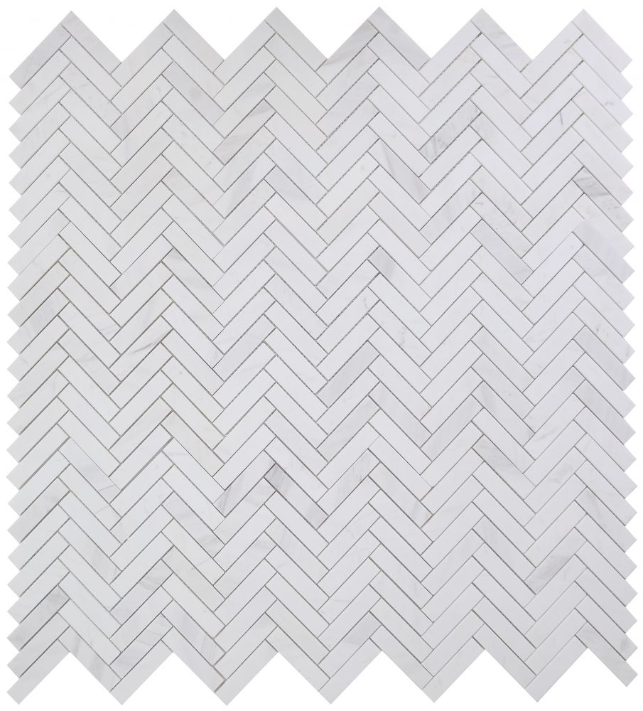 Product Sold By The SheetChevron & Herringbone Series: Herringbone White 11.25×11.25 – 1×4 White Volakas marble pieces in Herringbone pattern. This mosaic comes in a polished finish.Suggested Grout Color: Bostik Trucolor White H152WARNING: This product can expose you to chemicals including crystalline silica (airborne particles of respirable size) in dust created during fabrication/installation if the product is dry cut/ground or pulverized, which are known to the State of California to cause cancer. For more information, go to https://www.p65warnings.ca.gov/.