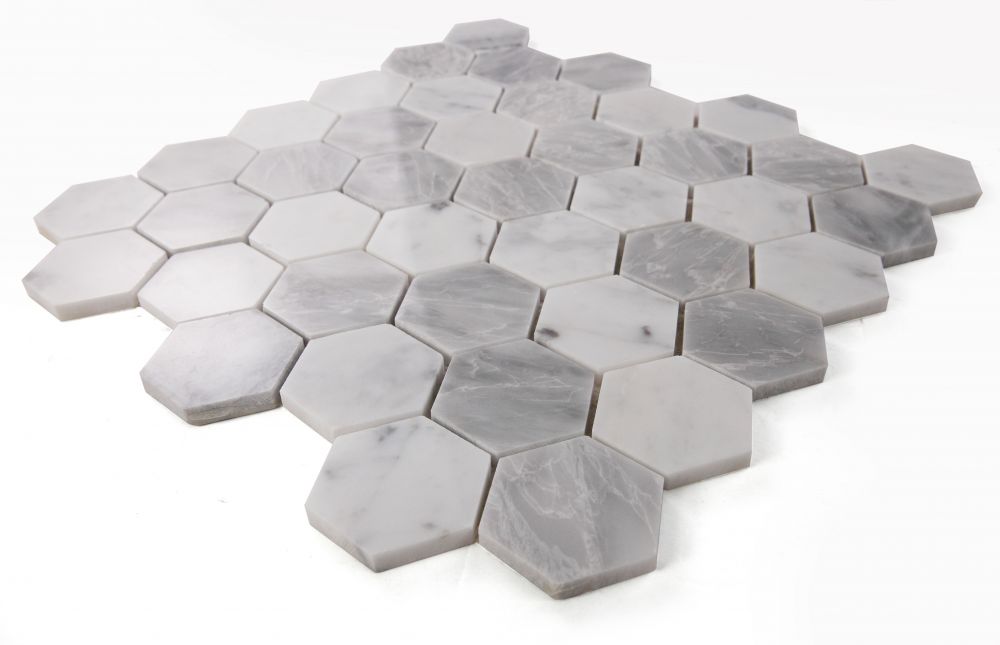 Product Sold By The SheetHexagon City Grey 2×2 11.75×12 – Hexagon mosaic made of Carrara and Bardiglio Marble.Suggested Grout Color: TBDWARNING: This product can expose you to chemicals including crystalline silica (airborne particles of respirable size) in dust created during fabrication/installation if the product is dry cut/ground or pulverized, which are known to the State of California to cause cancer. For more information, go to https://www.p65warnings.ca.gov/.