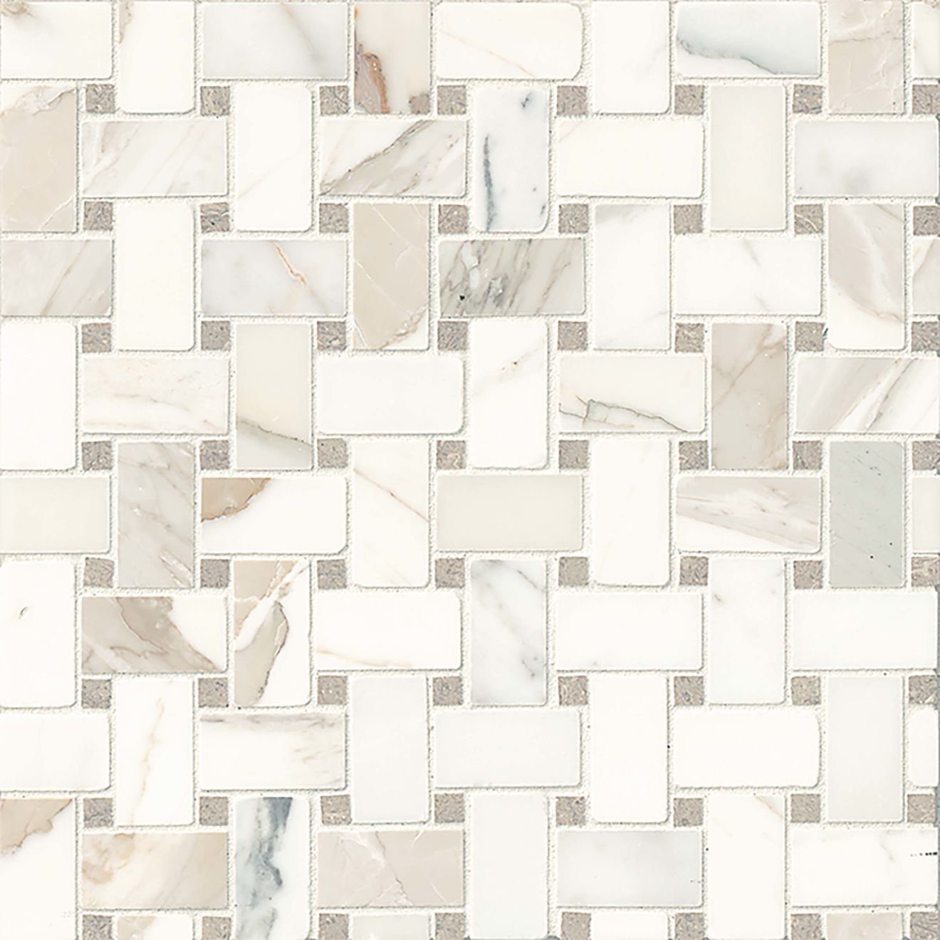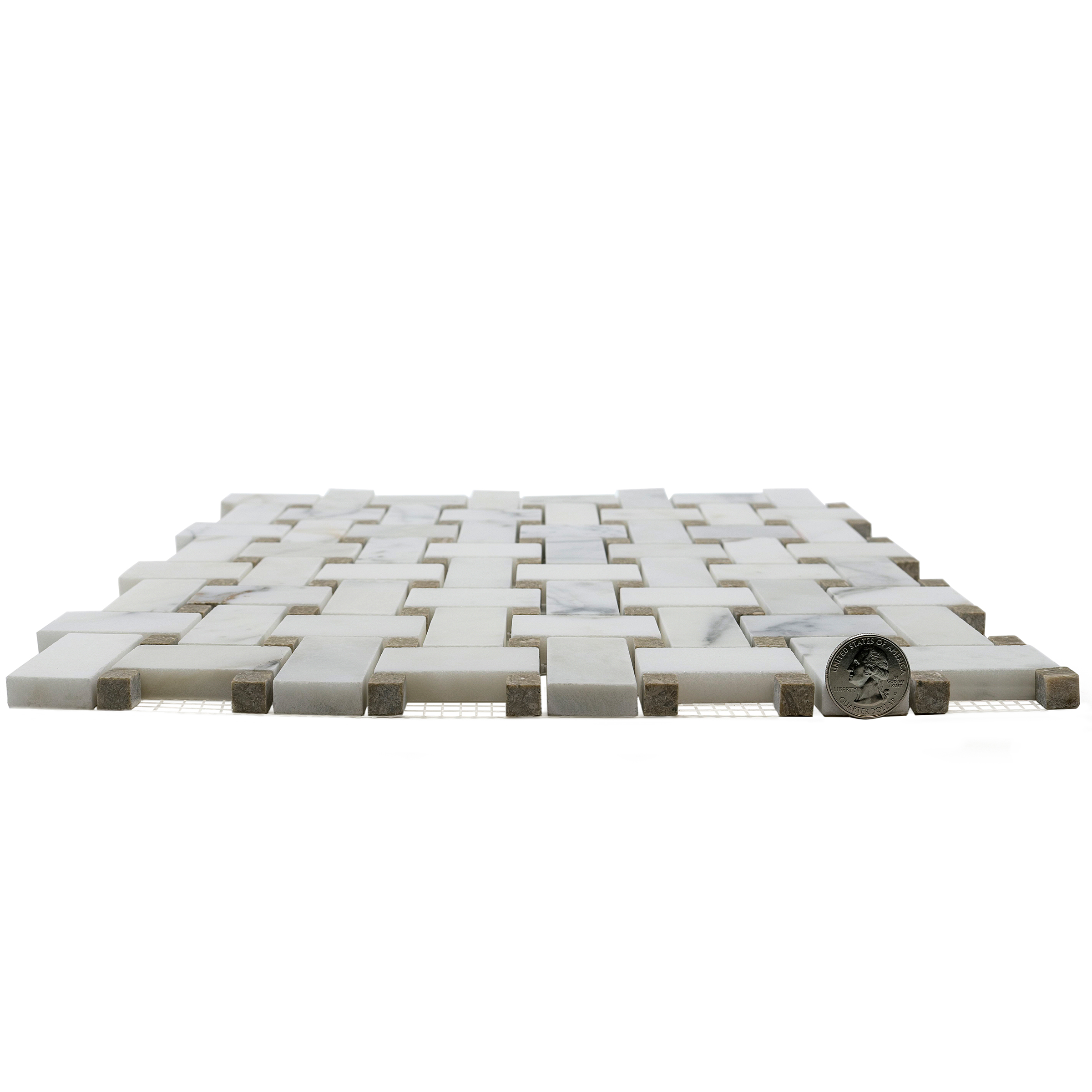 This classic mosaic that’s popularly used on bathroom floors and kitchen backsplashes, is available in eight beautiful natural stone blends. They range from the iconic black and white, to traditional creams and beiges, to modern grey and taupe color tones. With so many combinations available, it’s easy to coordinate a basketweave mosaic with your stone of choice.White or translucent marbles may rust and/or discolor over time when exposed to continuous moisture or water.Only honed tiles and 1×1 polished mosaics are suitable for shower floors.Images and product samples are representative of a product’s potential characteristics. There is no guarantee that the sample product or images will 100% match the product received. Field, mosaic, and trim tile may not be an exact match. Tiles are subject to variations in color, shade, size, surface texture and finish. Prior to installation, installer must blend tiles from several different boxes to achieve an even distribution of color range. Installer must conduct a dry mock layout under proper lighting conditions prior to installation. It is the consumer’s responsibility to inspect the product prior to installation to ensure satisfaction. Once installed, the product is deemed accepted. Check Manufacturer’s specifications as some Mosaic tiles may not be appropriate for wet applications. Reference the most current TCNA Handbook, ANSI, Manufacturer’s specifications, and Bedrosians Care & Maintenance guide for installation, outdoor use, care and maintenance information. Improper installation, application, use, care and maintenance voids warranty. We reserve the right to make changes to product specifications at any time without notice.