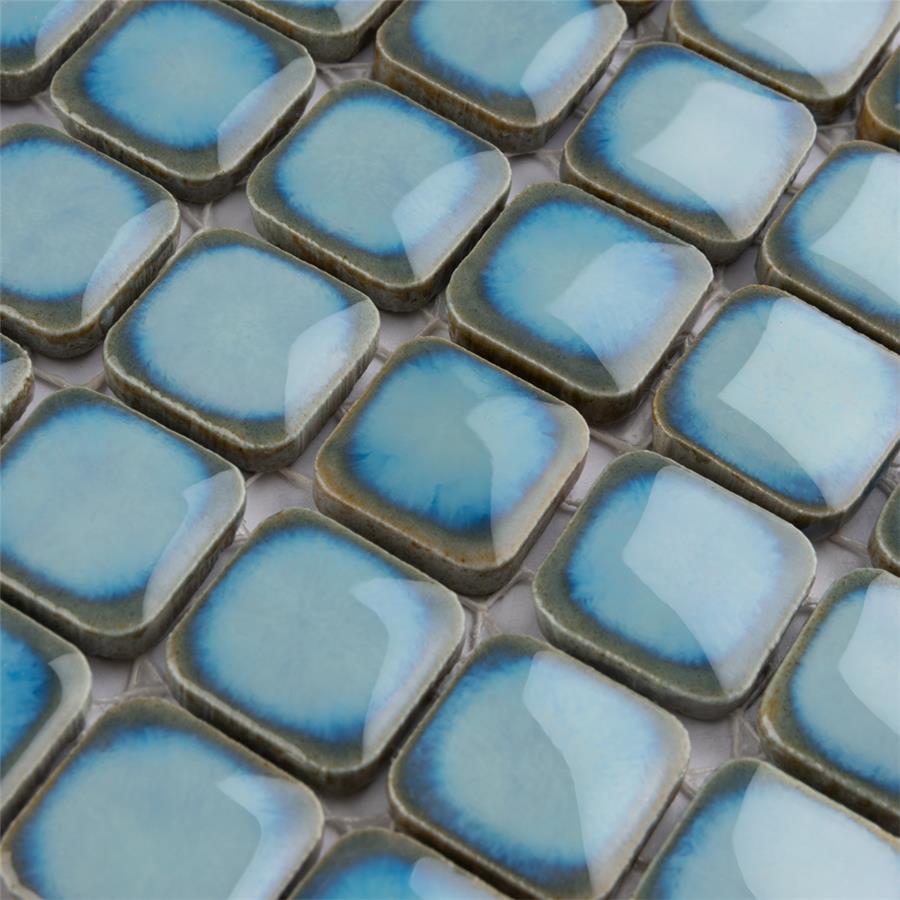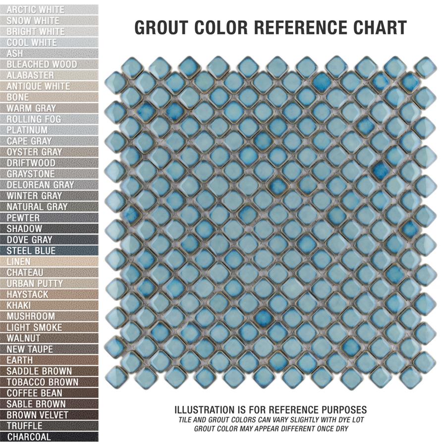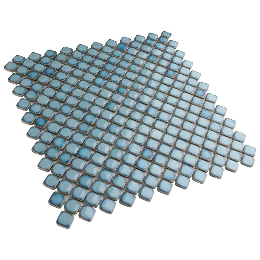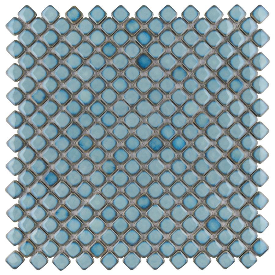 The SomerTile Hudson Diamond Marine 12-3/8 in. x 12-3/8 in. x 5 mm Porcelain Mosaic Tile offers a beautifully tranquil update on the timeless diamond design. This tile features a reactive glaze that creates variably blue tones in the center mixed with creamy shades on the edge. The end effect is a pleasing mixture of sky-blue tints with additional dimension added by the high-gloss finish. Impervious, frost-resistant and easy to clean, this tile is a perfect choice on its own or coordinated with other colors in our Hudson Diamond series.
