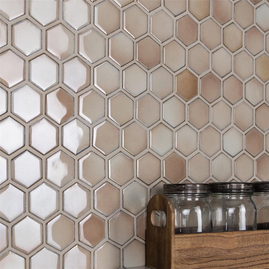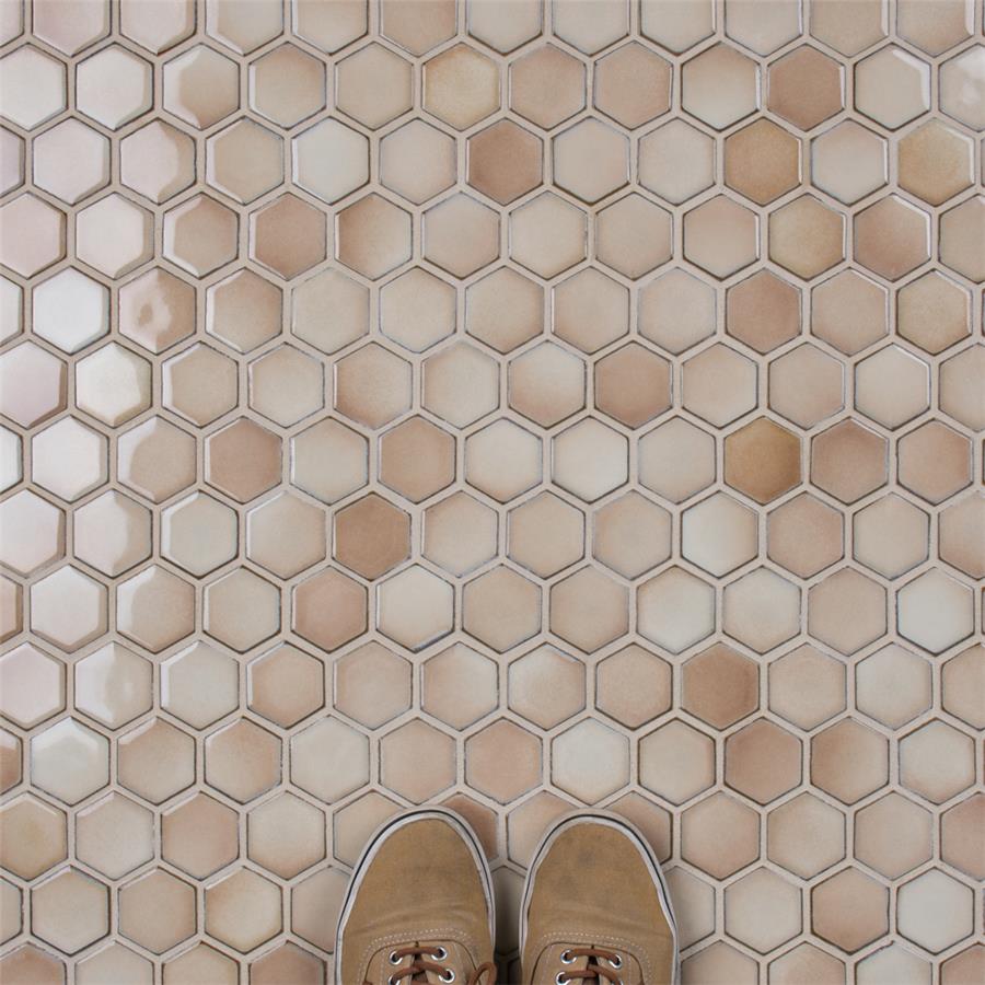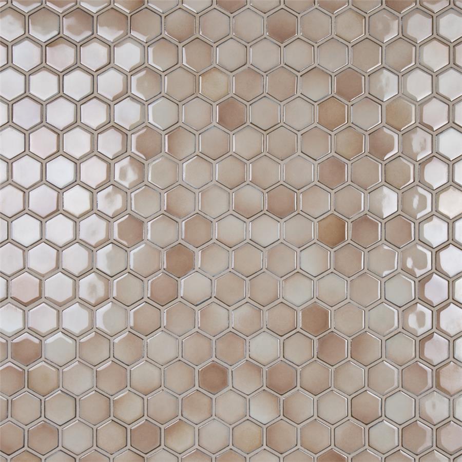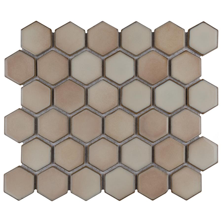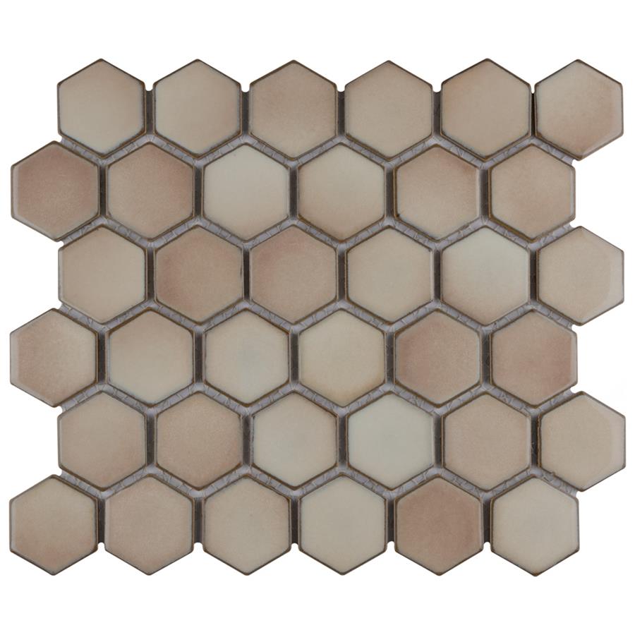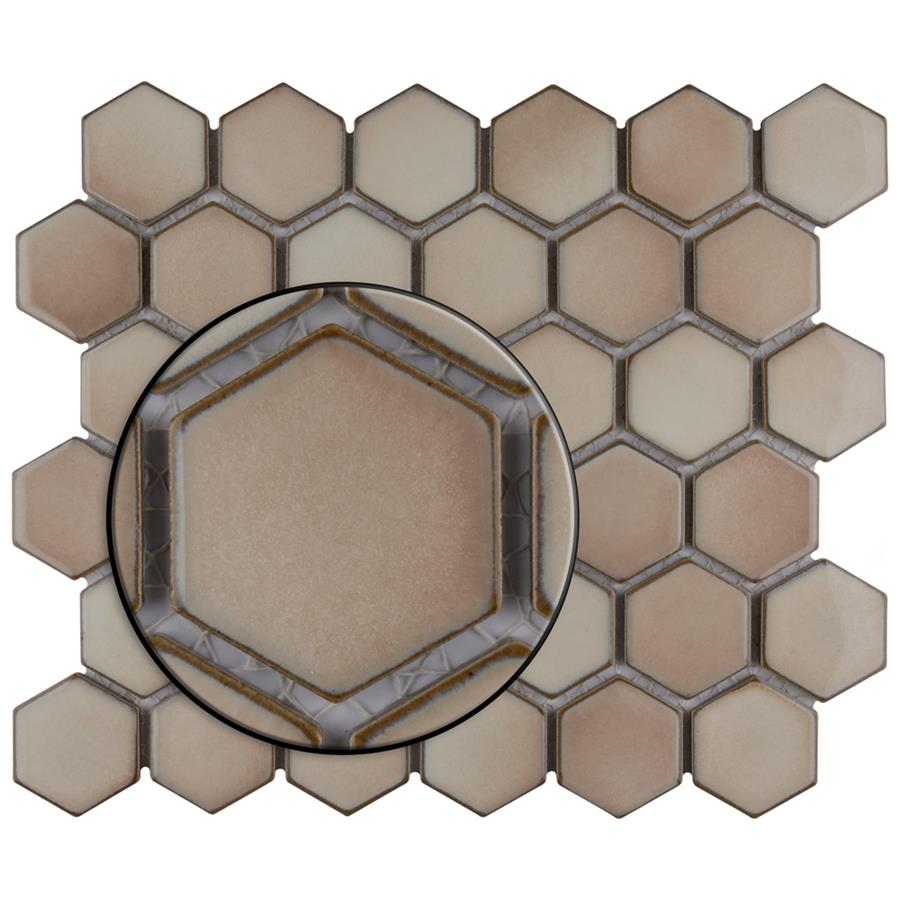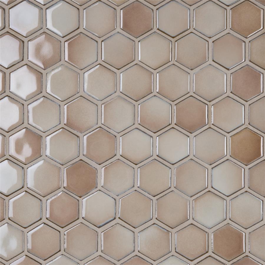 As a modern, enlarged deviation from the classic hexagon mosaic, our Hudson Due Hex 2 in. Truffle 12-1/2 in. x 11-1/4 in. Porcelain Mosaic Floor and Wall Tile instantly elevates spaces through a refreshing dose of geometric design. Featuring a reactive glaze with an eye-drop effect, these tiles have hues of soft beige that blend to taupe around the edges. This porcelain mosaic floor and wall tile creates a uniquely sporadic design through a pleasing mixture of warm-toned tints with additional dimension added by the smooth, high-gloss finish. Its impervious and frost-resistant features make this an ideal choice for both commercial and residential indoor and outdoor floor and wall installations including, kitchen backsplashes, bathroom showers and accent walls. This hexagon mosaic can be used as a whole sheet or cut into smaller strips as an accent piece. It is a perfect choice on its own or coordinated with other colors in our Hudson Due Hex series.Tile is the better choice for your space. This tile is made from natural ingredients, making it a healthy choice as it is free from allergens, VOCs, formaldehyde and PVC.