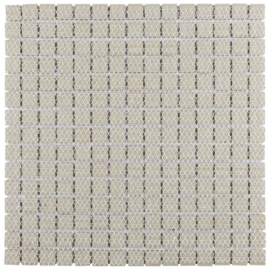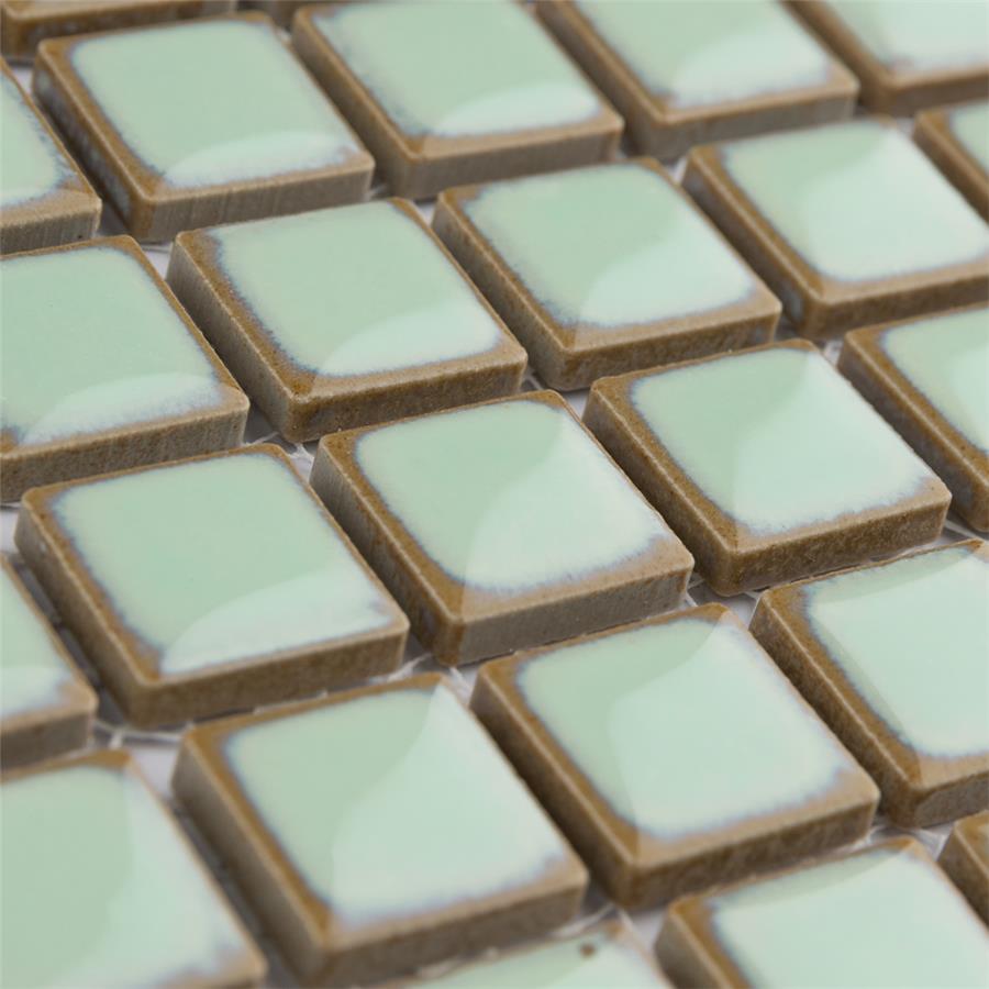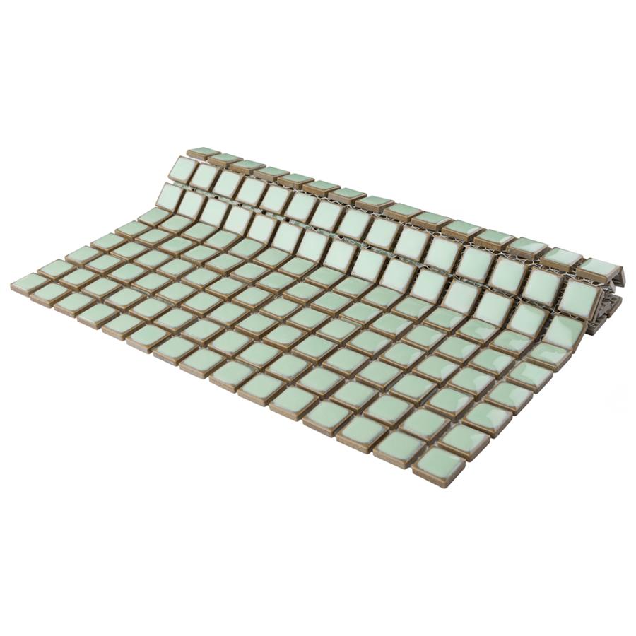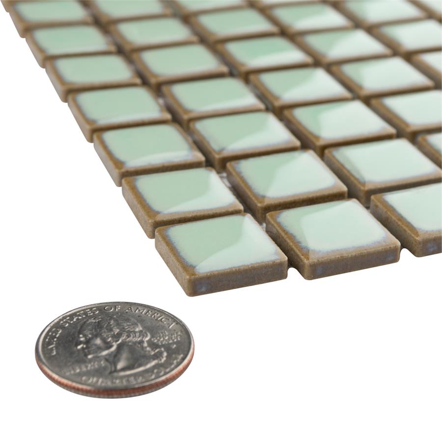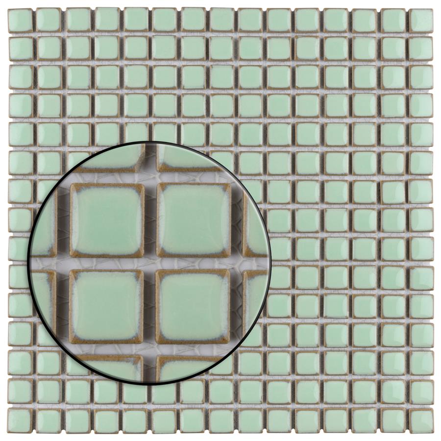The SomerTile Hudson Edge Light Green 12-3/8 in. x 12-3/8 in. x 6 mm Porcelain Mosaic Tile offers a beautifully tranquil update on the timeless square design. This tile features variable green tones in the center mixed with beige shades on the edge. The end effect is a pleasing mixture of tints with additional dimension added by the high-gloss finish. Impervious, frost-resistant and easy to clean, this tile is a perfect choice on its own or coordinated with other colors in our Hudson Edge series.