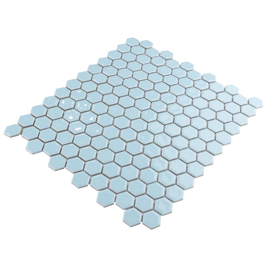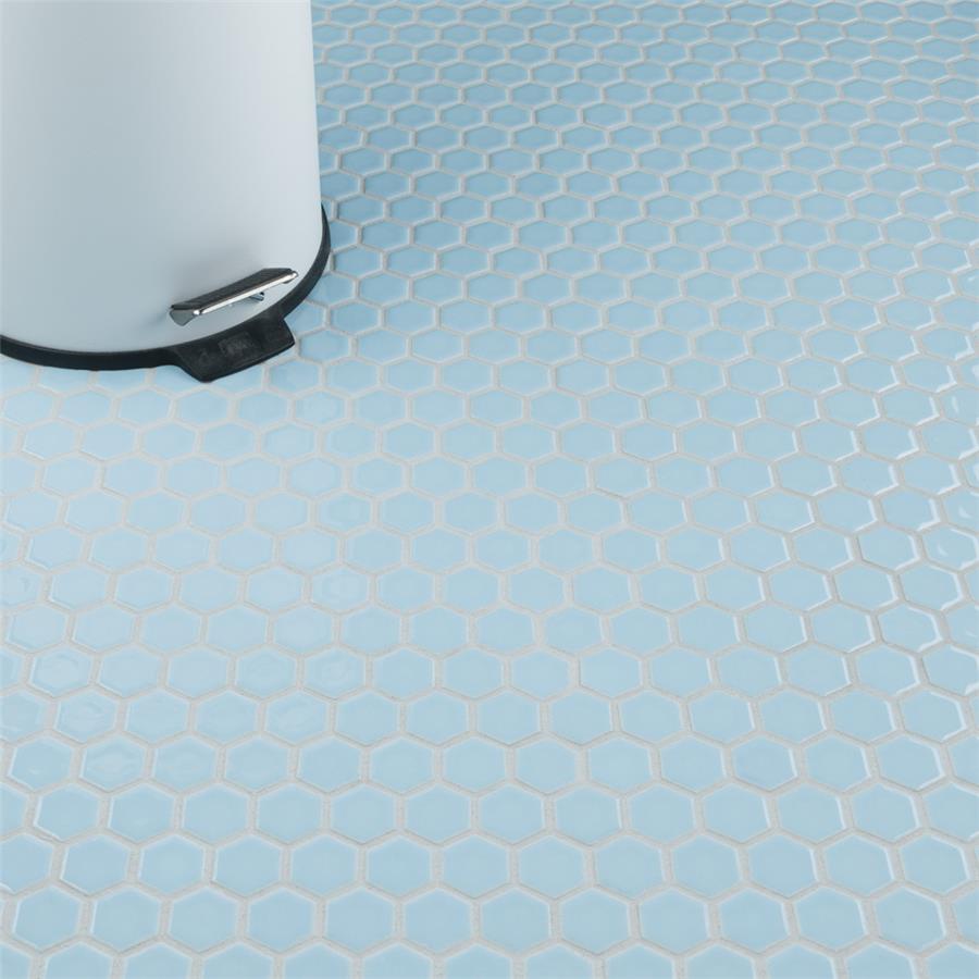Our Hudson 1 in. Hex Cashmere Blue 13-1/4 in. x 11-7/8 in. Porcelain Floor and Wall Mosaic Tile instantly elevates spaces through a refreshing dose of geometric design. This mosaic tile features a uniformly glazed surface with a smooth texture and a powder blue color tone. It offers a versatile appearance that is unique yet simplistic enough to integrate into any design, ranging from traditional style renovations to modern home projects. Its impervious, frost-resistant and durable features make this an ideal choice for both commercial and residential indoor and outdoor floor and wall installations including, kitchens, bathrooms, backsplashes, showers and fireplace facades. It is a perfect choice on its own or coordinated with other colors in our Hudson 1 in. Hex series. Tile is the better choice for your space. This tile is made from natural ingredients, making it a healthy choice as it is free from allergens, VOCs, formaldehyde and PVC.