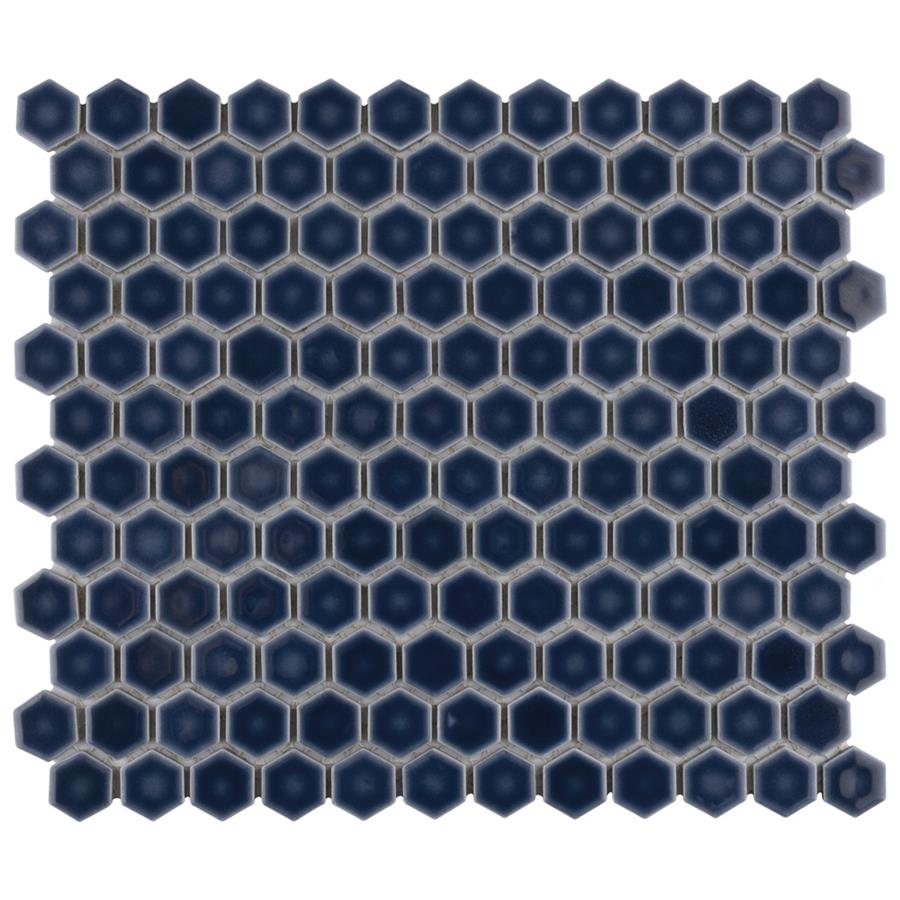 Hudson Hex 1″ Denim Blue 11-7/8″ x 13-1/4″ Porcelain Mosaic