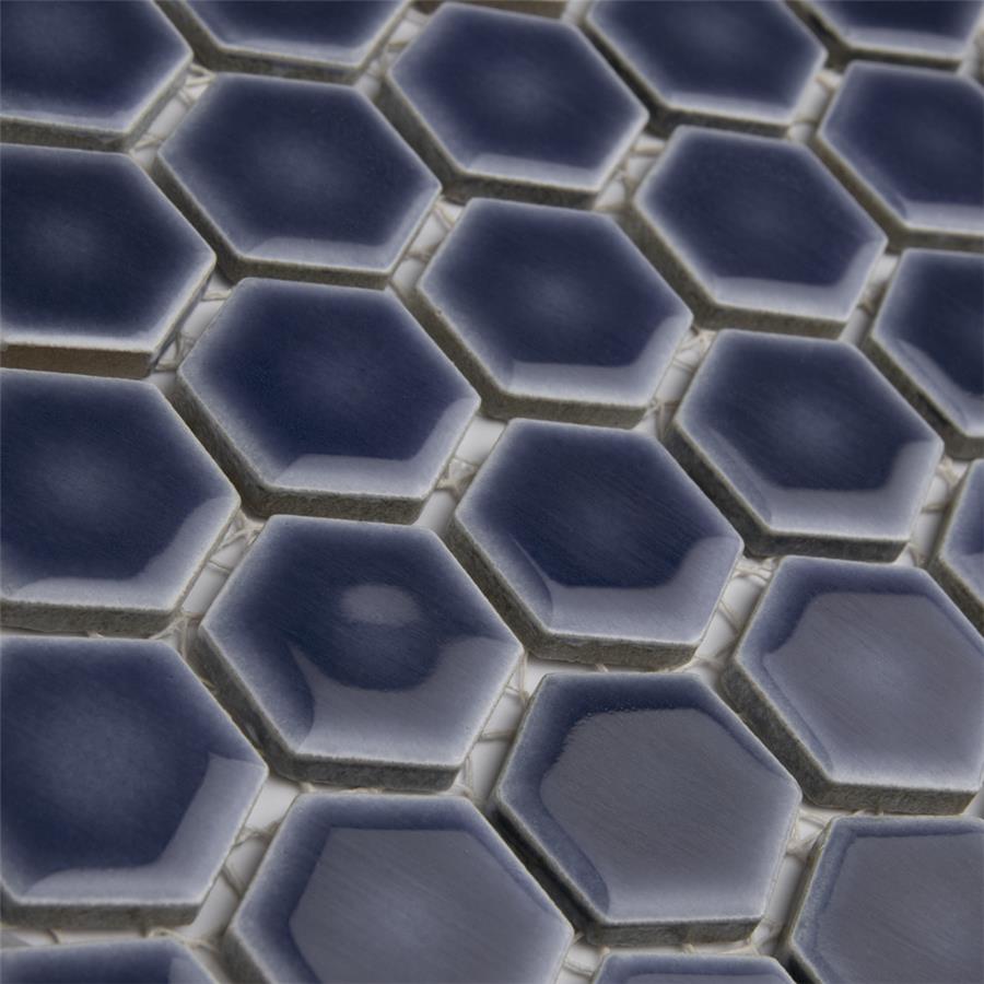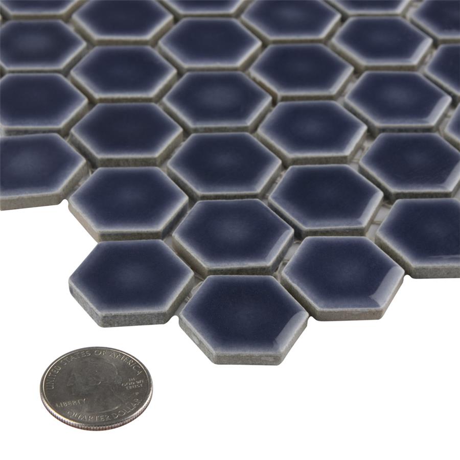 Our Hudson Hex 1 in. Denim Blue 13-1/4 in. x 11-7/8 in. Porcelain Floor and Wall Mosaic Tile instantly elevates spaces through a refreshing dose of geometric design. Featuring a reactive glaze with an eye-drop effect, these tiles have hues of faded denim blue that blend to white around the edges. This mosaic creates a uniquely sporadic design through a pleasing mixture of cool-toned tints with additional dimension added by the smooth, high-gloss finish. This porcelain mosaic floor and wall tile is unique yet simplistic enough to integrate into any design, ranging from traditional style renovations to modern home projects. Its impervious and frost-resistant features make this an ideal choice for both commercial and residential indoor and outdoor floor and wall installations including, kitchen backsplashes, bathroom showers and accent walls. This hexagon mosaic can be used as a whole sheet or cut into smaller strips as an accent piece. It is a perfect choice on its own or coordinated with other colors in our Hudson Hex series.Tile is the better choice for your space. This tile is made from natural ingredients, making it a healthy choice as it is free from allergens, VOCs, formaldehyde and PVC.