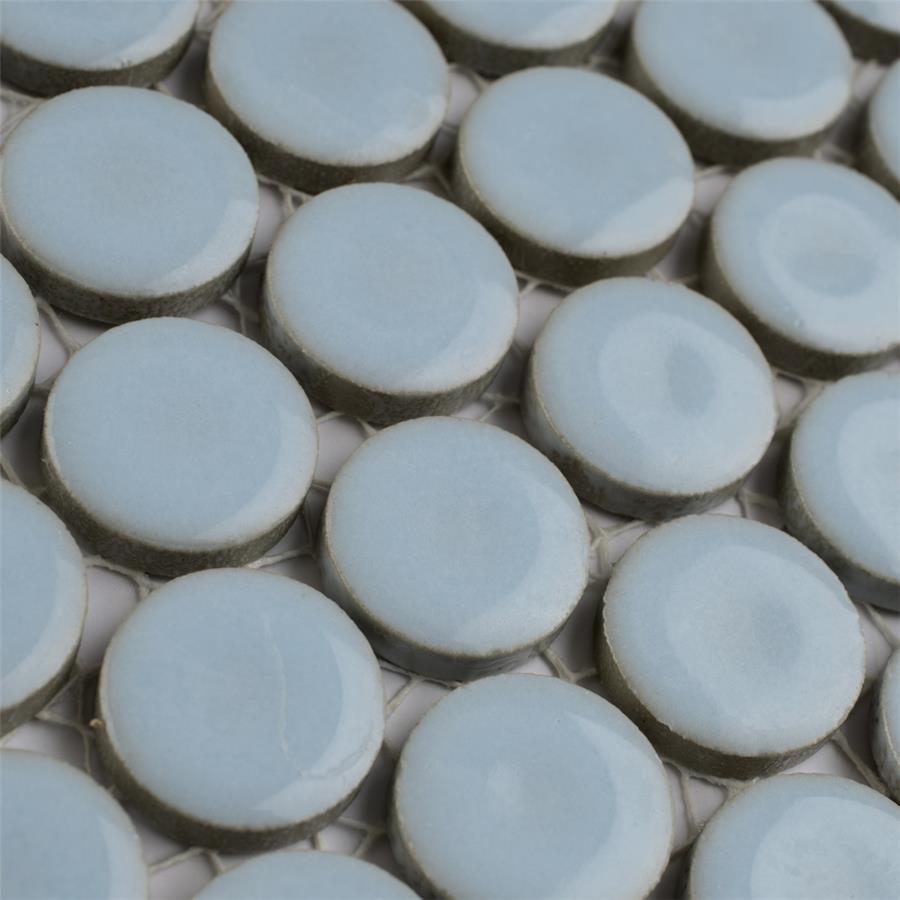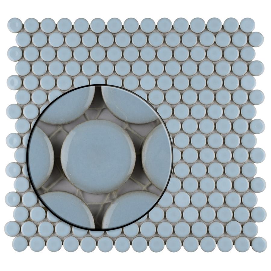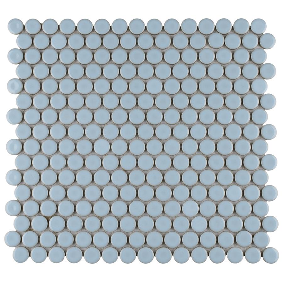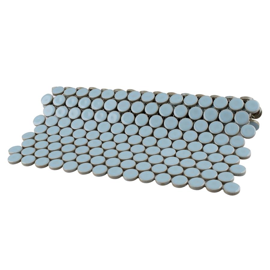 Our Hudson Penny Round Cashmere Blue 12 in. x 12-5/8 in. x 5 mm Porcelain Mosaic Tile is a beautifully tranquil update on the timeless penny round design. Featuring a uniformly glazed surface, these tiles have soothing powder blue color tone with a slight tinge of white. This mosaic is a pleasing mixture of cool-toned tints with additional dimension added by the smooth, high-gloss finish. Its impervious and frost-resistant features make this penny tile an ideal choice for indoor and outdoor floor and wall installations including, kitchen backsplashes, bathroom showers and accent walls. This penny round tile can be used as a whole sheet or cut into smaller strips as an accent piece. It is a perfect choice on its own or coordinated with other colors in our Hudson Penny Round series. Tile is the better choice for your space. This tile is made from natural ingredients, making it a healthy choice as it is free from allergens, VOCs, formaldehyde and PVC.
