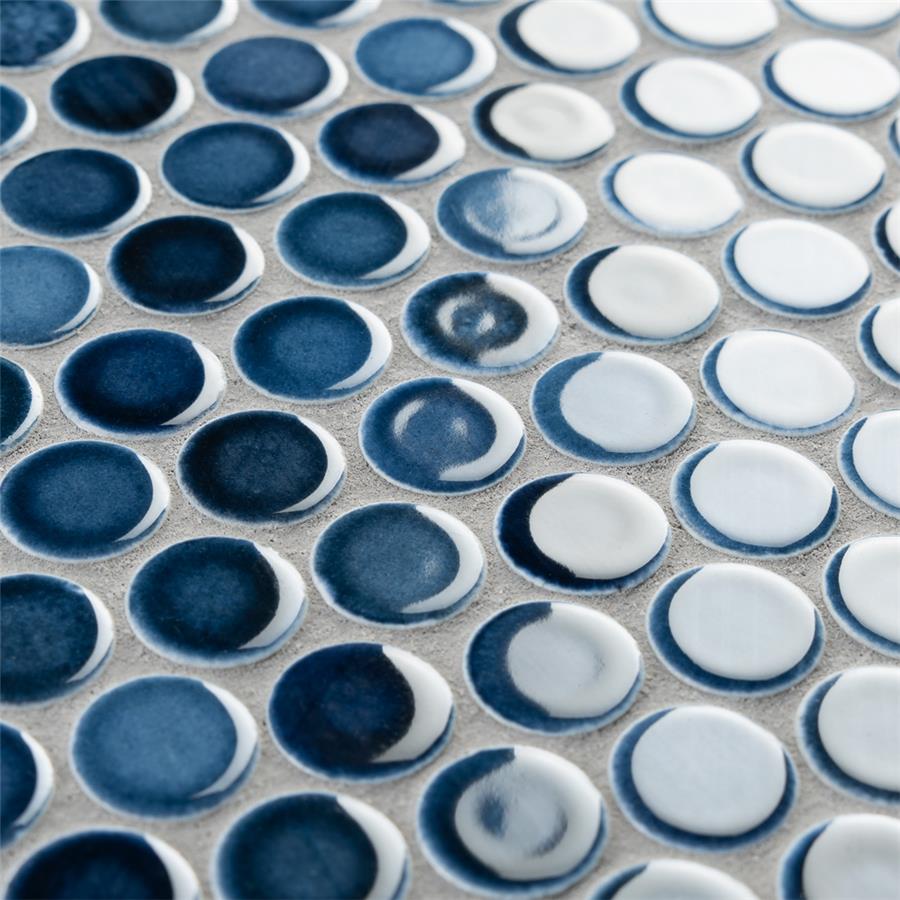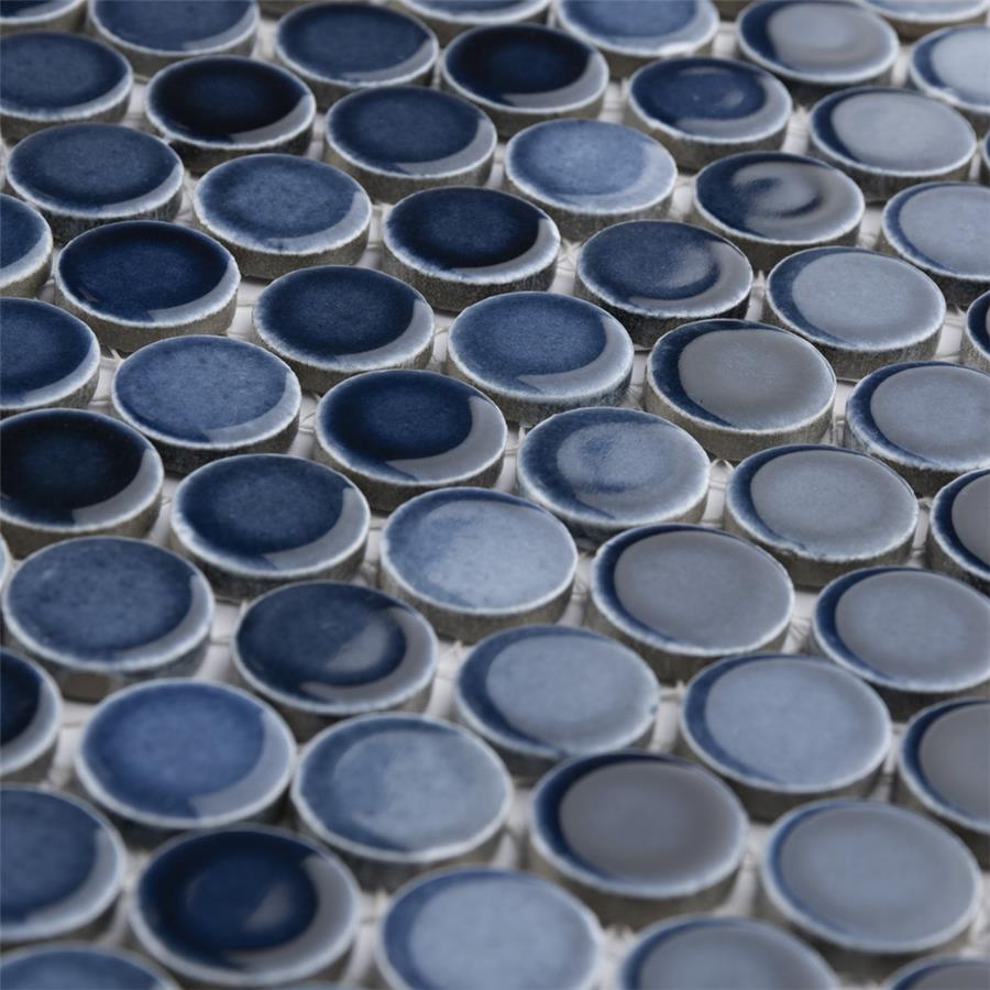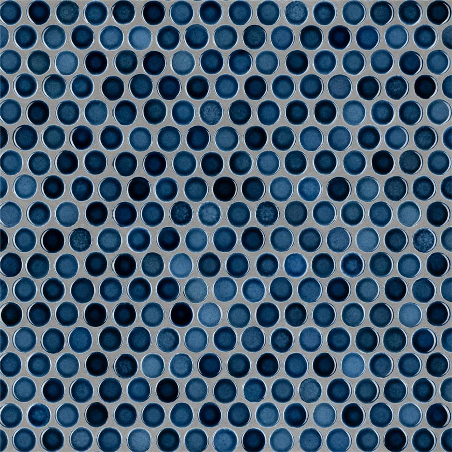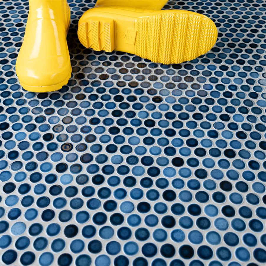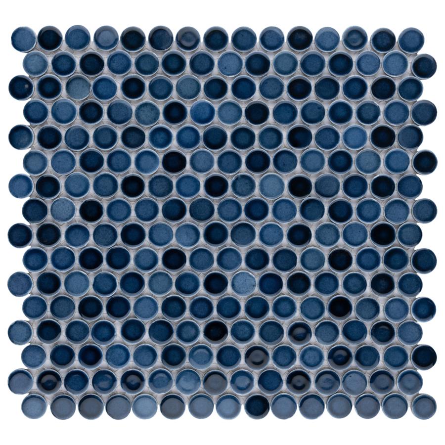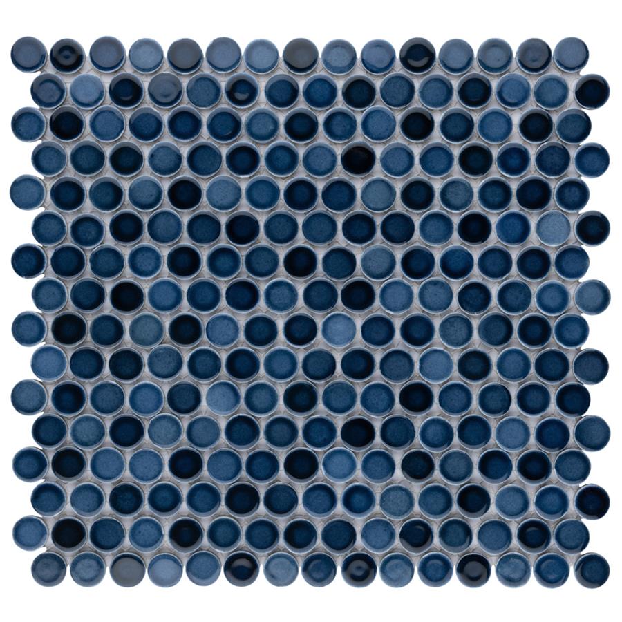 Our Hudson Penny Round Glacier 12 in. x 12-5/8 in. Porcelain Floor and Wall Mosaic Tile is a beautifully tranquil update on the timeless penny round design. Featuring a reactive glaze with an eye-drop effect, these tiles have soothing hues of light and dark blue that blend to white around the edges. This mosaic creates a uniquely sporadic design through a pleasing mixture of cool-toned tints with additional dimension added by the smooth, high-gloss finish. Its impervious and frost-resistant features make this penny tile an ideal choice for indoor and outdoor floor and wall installations including kitchen backsplashes, bathroom showers and accent walls. This penny round tile can be used as a whole sheet or cut into smaller strips as an accent piece. It is a perfect choice on its own or coordinated with other colors in our Hudson Penny Round series. Tile is the better choice for your space. This tile is made from natural ingredients, making it a healthy choice as it is free from allergens, VOCs, formaldehyde and PVC.