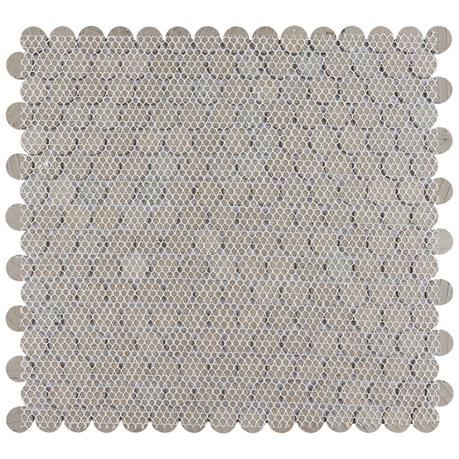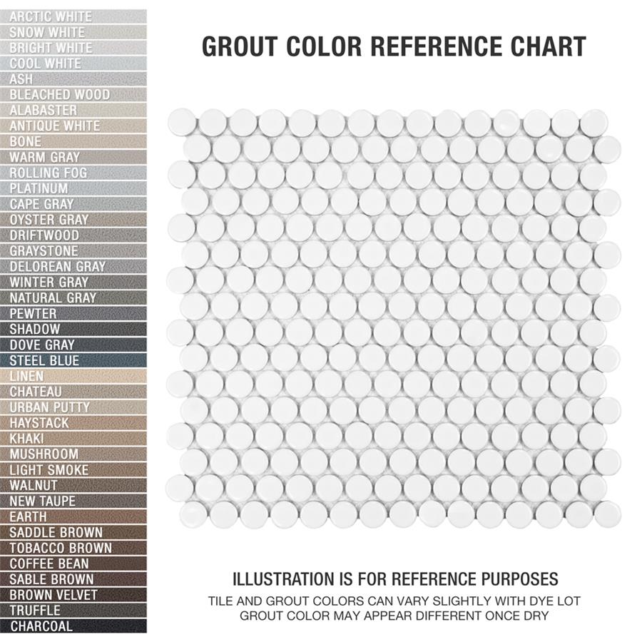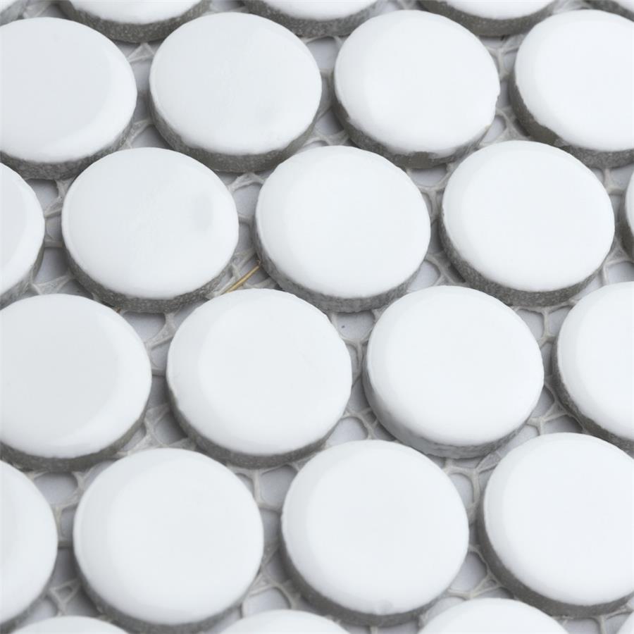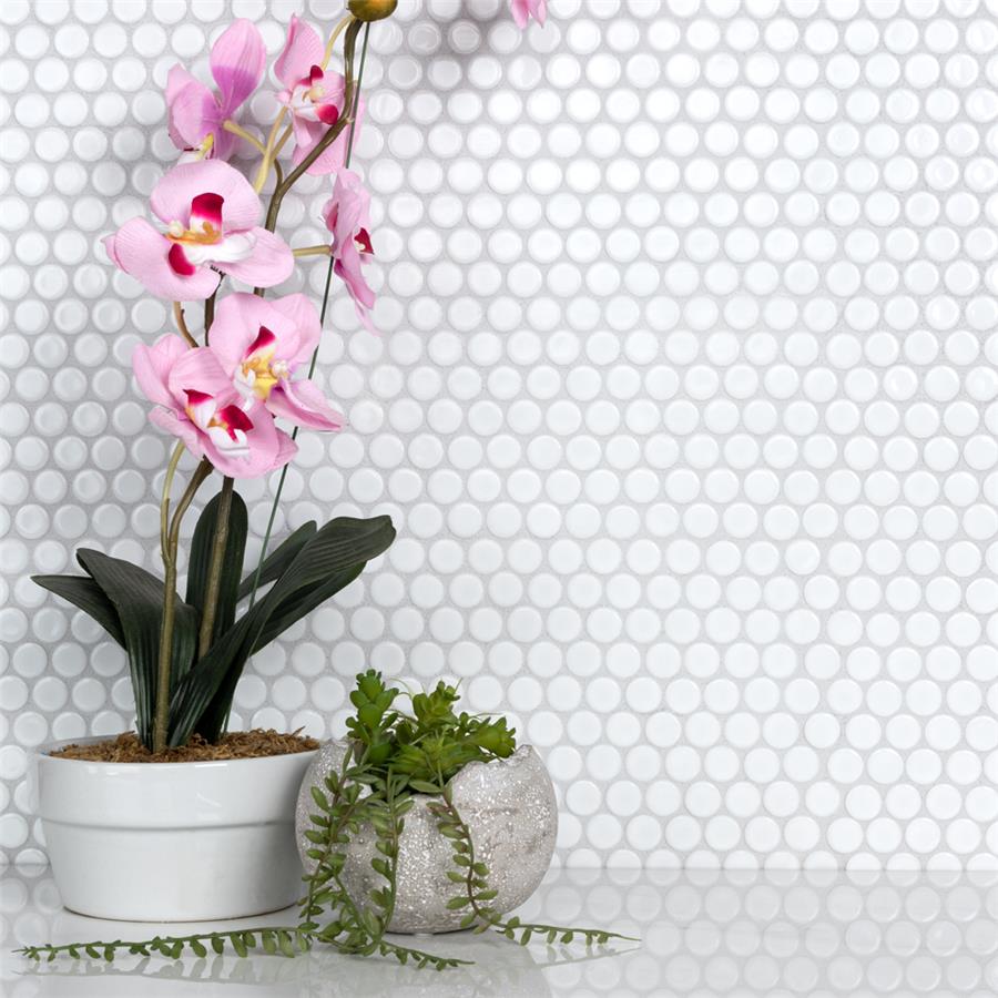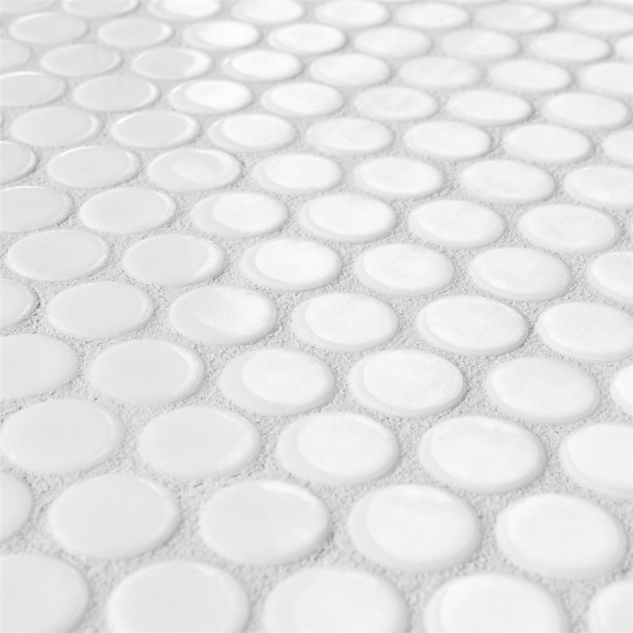 Our Hudson Penny Round Glossy White 12 in. x 12-5/8 in. x 5 mm Porcelain Mosaic Tile lends a refreshing aesthetic to the classic penny round shape.This mosaic tile features a uniformly glazed surface with a smooth texture and a glossy white color tone. It offers a versatile appearance thatis unique yet simplistic enough to integrate into any design, ranging from traditional style renovations to modern home projects.Its impervious and frost-resistant features make this penny tile an ideal choice for indoor and outdoor floor and wall installations including, kitchen backsplashes, bathroom showers and accent walls. This penny round tile can be used as a whole sheet or cut into smaller strips as an accent piece. It is a perfect choice on its own or coordinated with other colors in our Hudson Penny Round series. Tile is the better choice for your space. This tile is made from natural ingredients, making it a healthy choice as it is free from allergens, VOCs, formaldehyde and PVC.