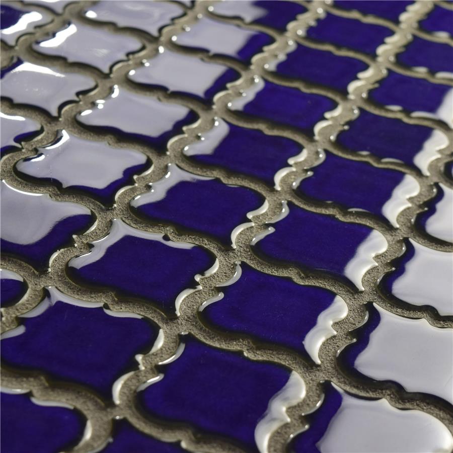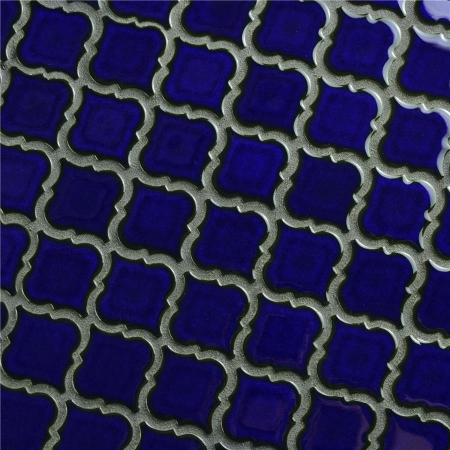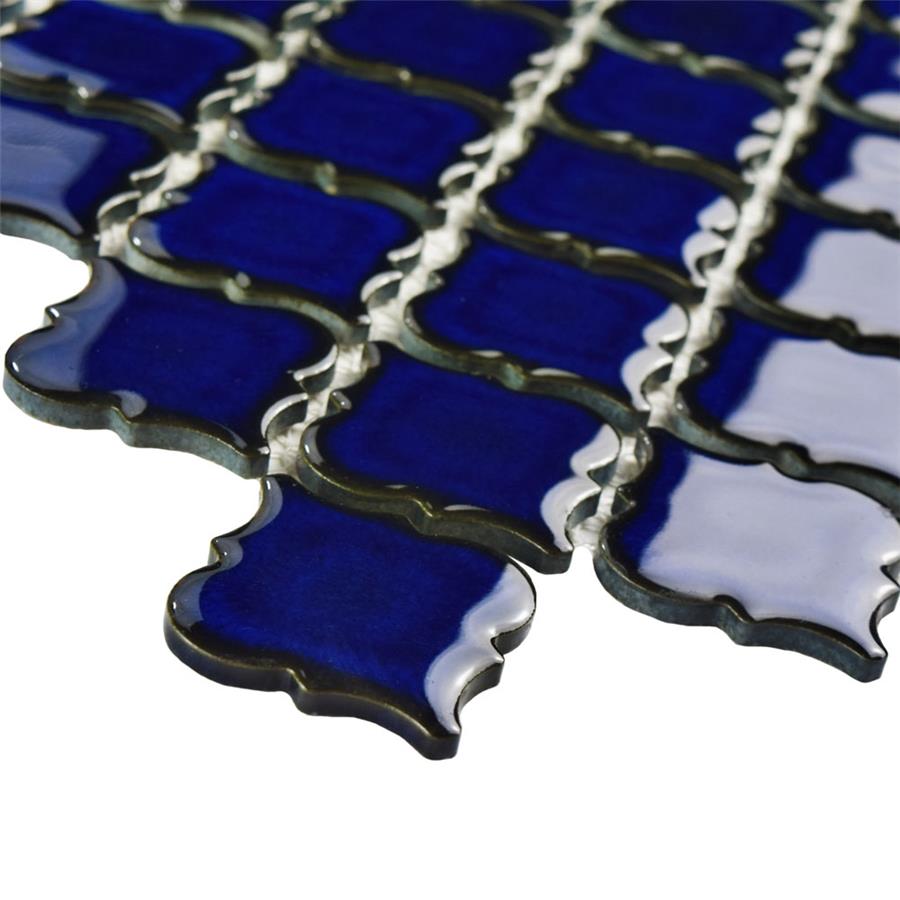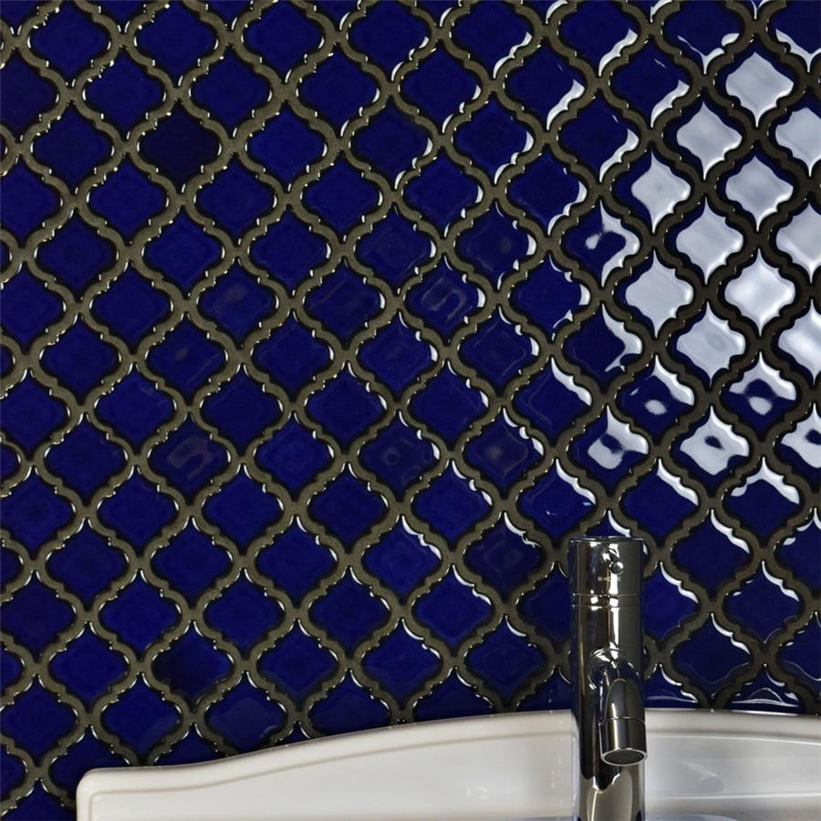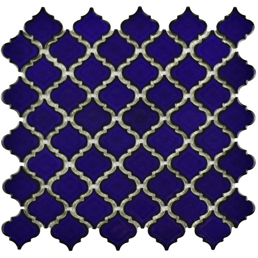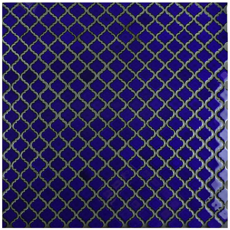 The SomerTile Hudson Tangier Blue Eye 12-3/8 in. x 12-1/2 in. x 5 mm Porcelain Mosaic Tile features our popular lantern design with a modern update. This tile features a stunning cobalt blue color with a black ring around the edge to add dimension. The deep color and reactive glaze couple perfectly, allowing for a peaceful aesthetic. A glossy sheen is the final touch, adding one more eye-catching element to this already uniquely beautiful tile. Impervious, frost-resistant and easy to clean, this tile is a perfect choice on its own or coordinated with other colors in our Hudson series.