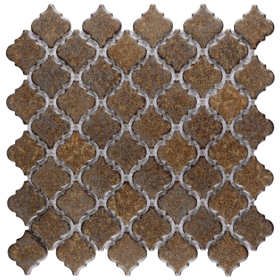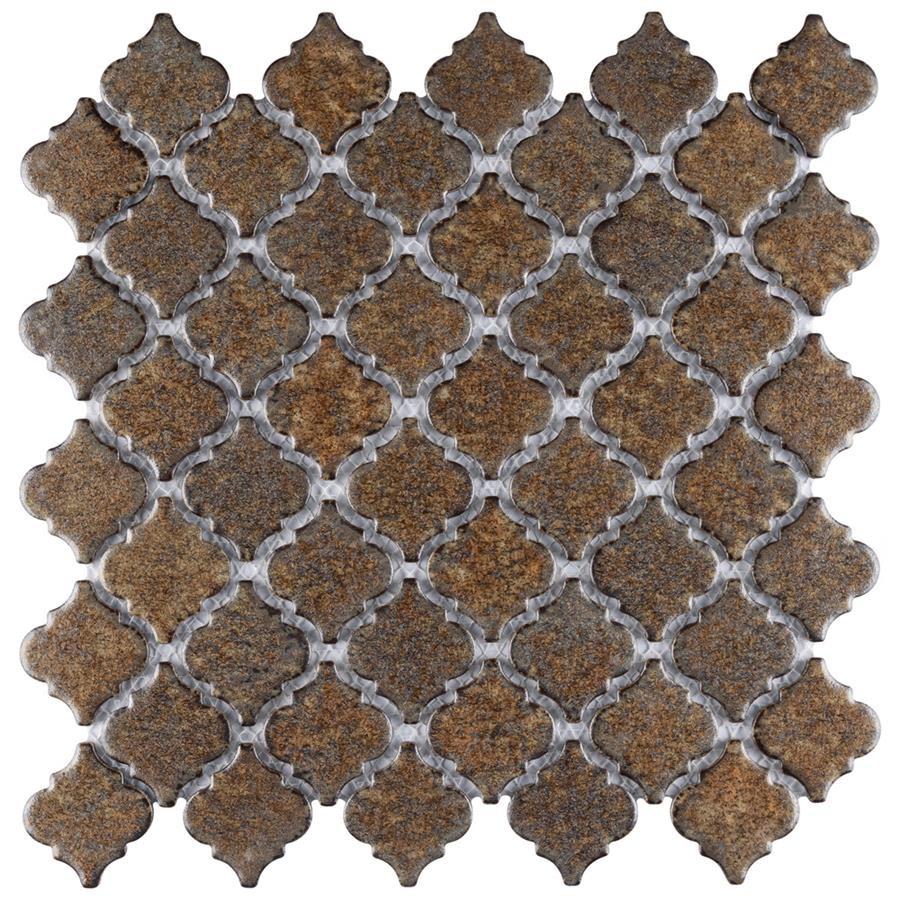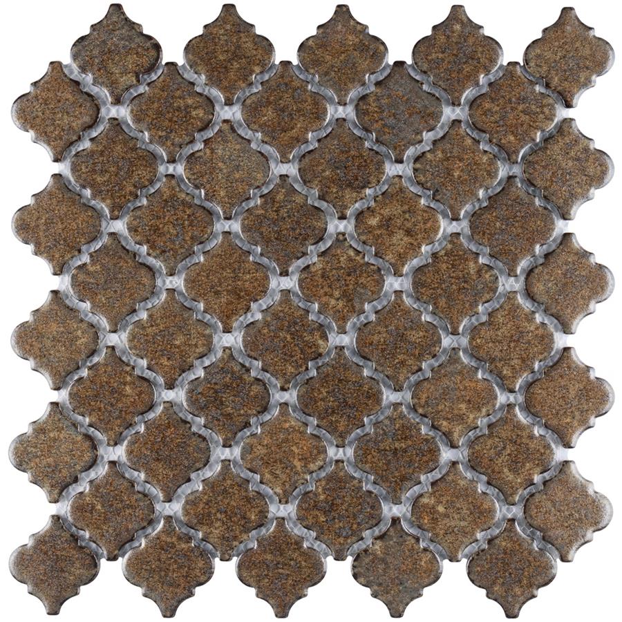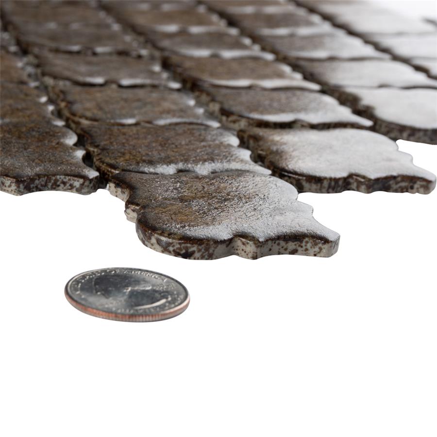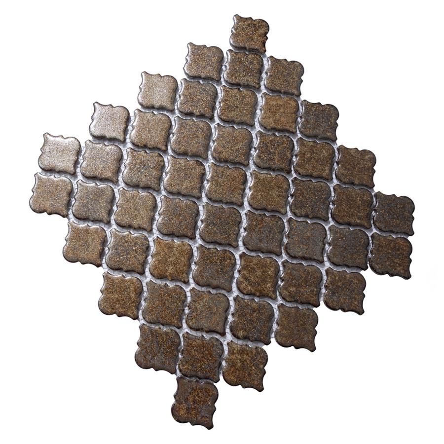 The SomerTile Hudson Tangier Brownstone 12-3/8 in. 12-1/2 in. x 5 mm Porcelain Mosaic Tile is a high-gloss complement to just about any decor. The moss brown color is emphasized by a lantern shape which gives an earthy panache to any vintage installation. Impervious, frost-resistant and easy to clean, this tile is a perfect choice on its own or coordinated with other colors in our Hudson Tangier series.