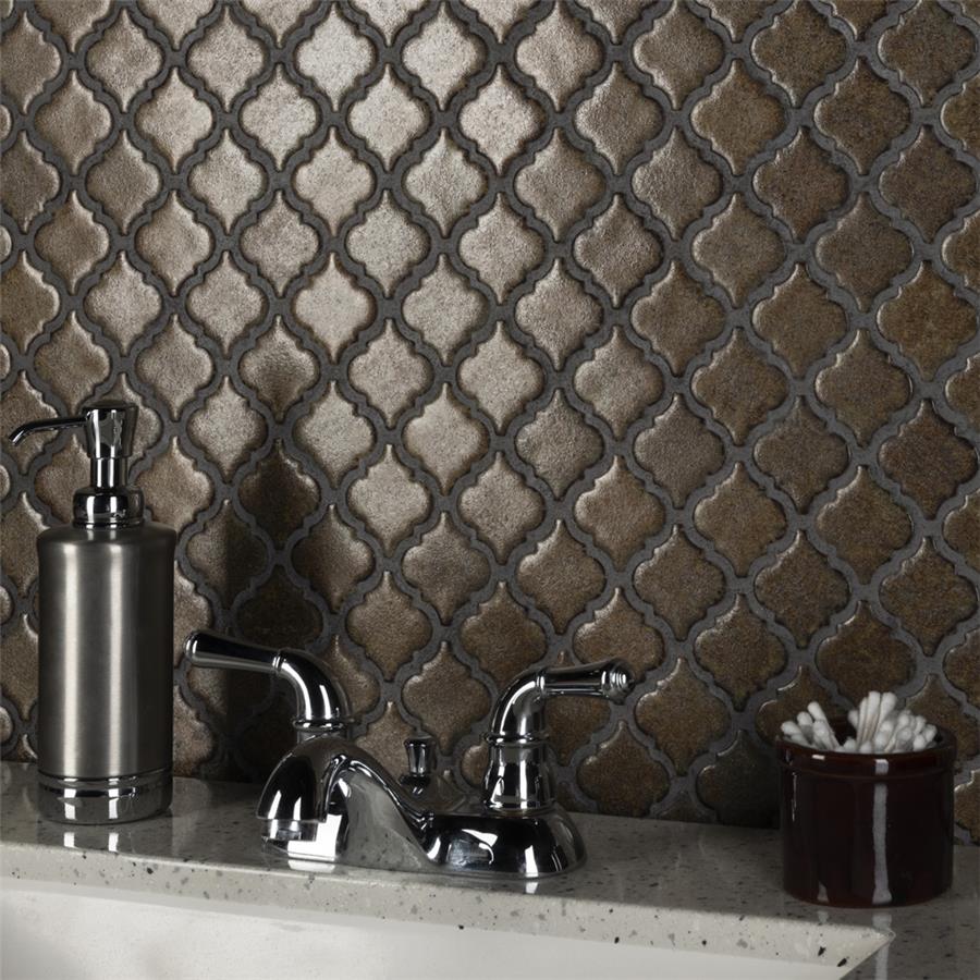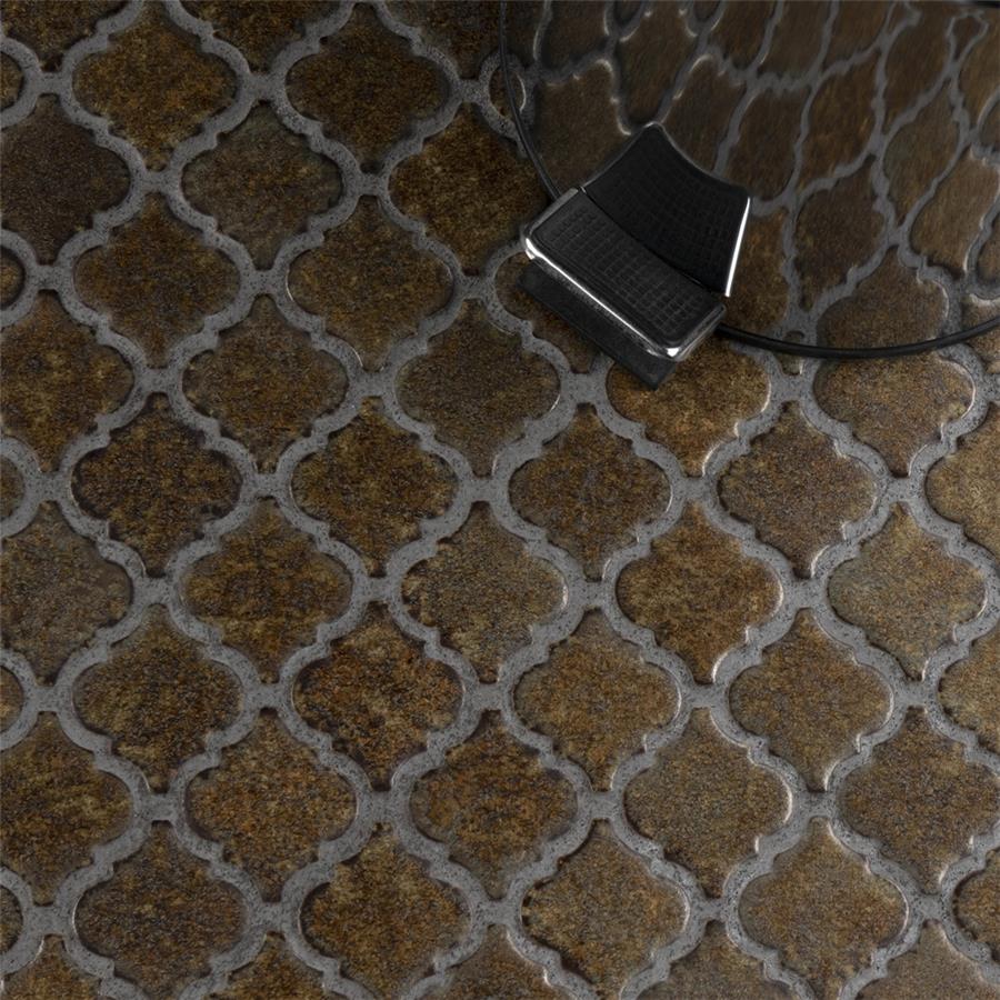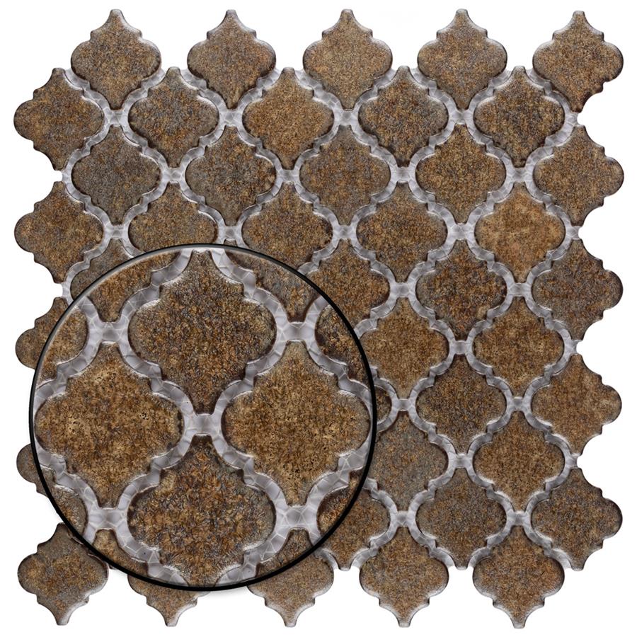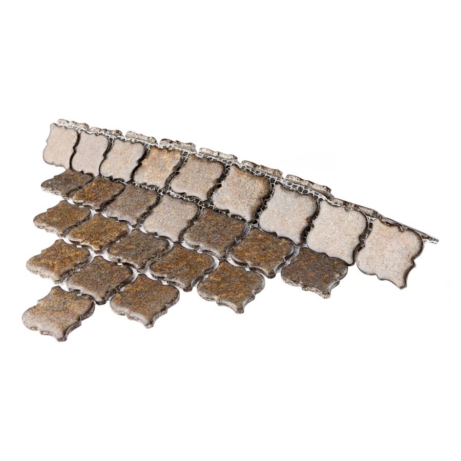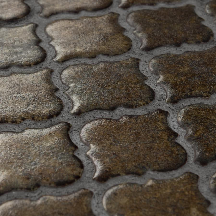 The SomerTile Hudson Tangier Brownstone 12-3/8 in. 12-1/2 in. x 5 mm Porcelain Mosaic Tile is a high-gloss complement to just about any decor. The moss brown color is emphasized by a lantern shape which gives an earthy panache to any vintage installation. Impervious, frost-resistant and easy to clean, this tile is a perfect choice on its own or coordinated with other colors in our Hudson Tangier series.