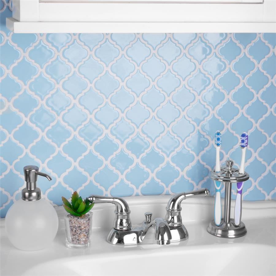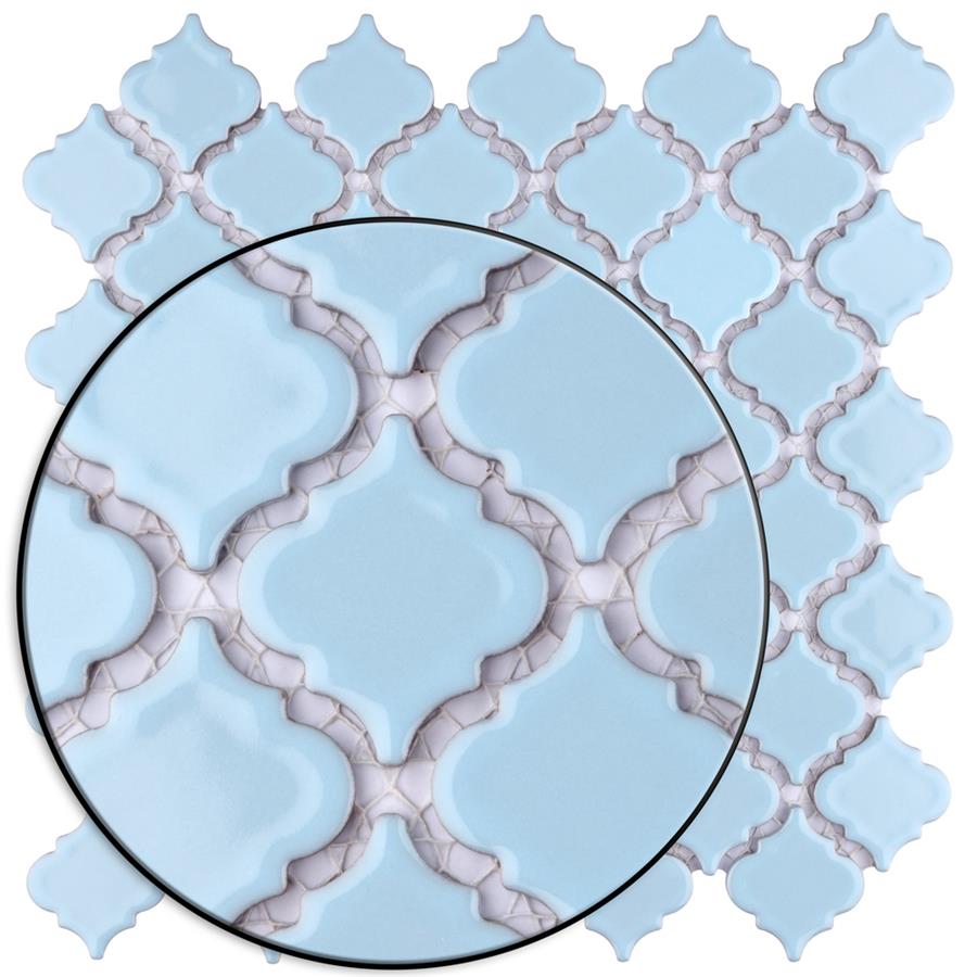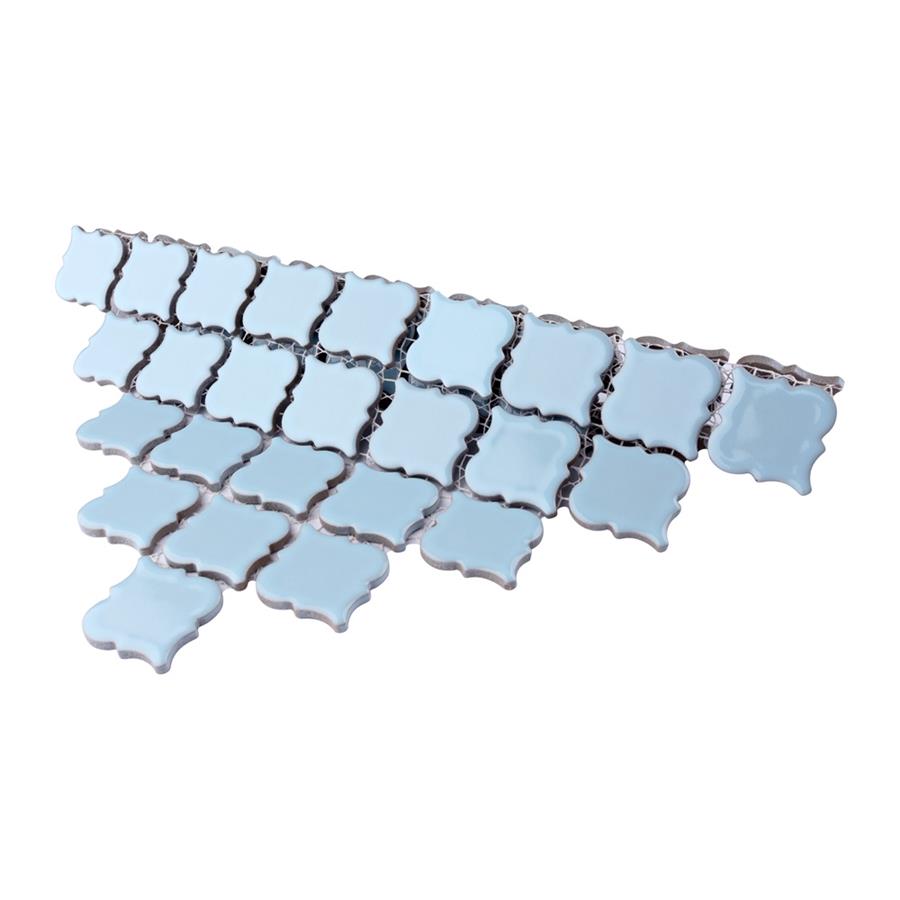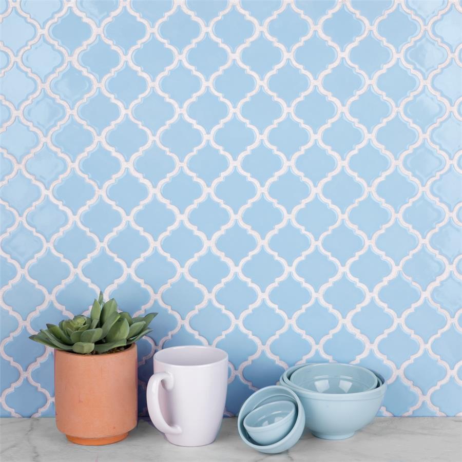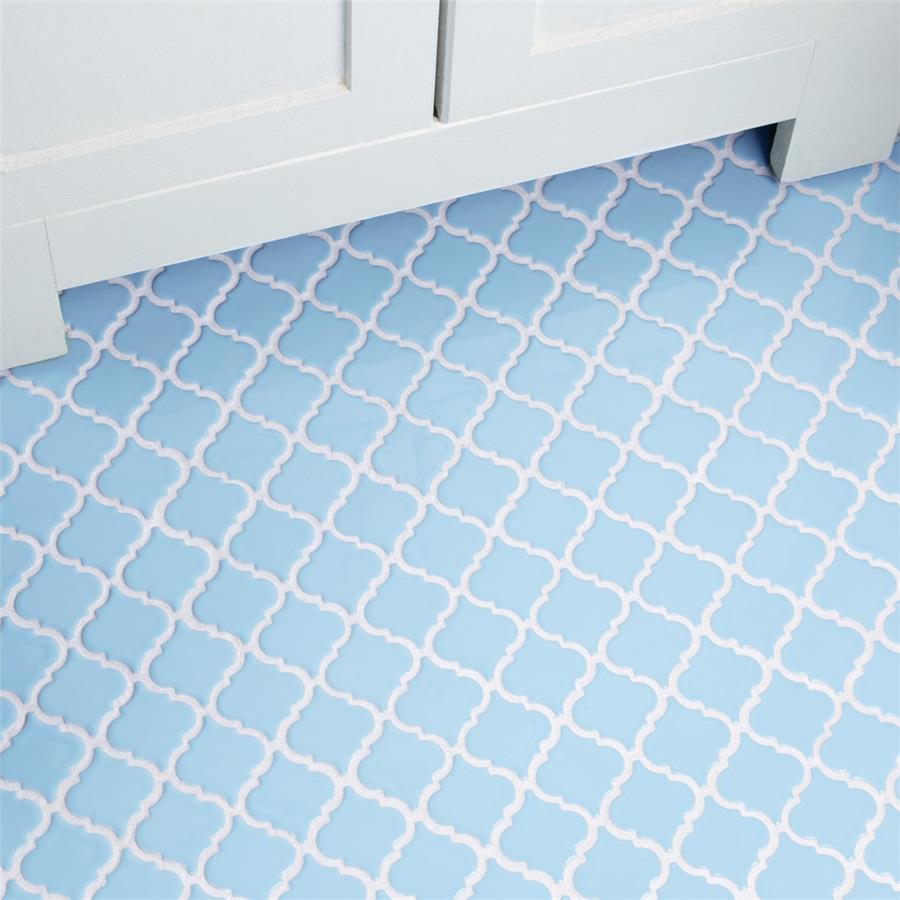 The SomerTile Hudson Tangier Cashmere Blue 12-3/8 in. x 12-1/2 in. x 5 mm Porcelain Mosaic Tile features our popular lantern design with a modern update. This tile features a uniformly glazed surface with a smooth texture and a soothing powder blue slightly tinged with white for added depth. The end effect is a pleasing mixture of cool-toned tints with additional dimension added by the high-gloss finish. Impervious, frost-resistant and easy to clean, this tile is a perfect choice on its own or coordinated with other colors in our Hudson series.Tile is the better choice for your space. This tile is made from natural ingredients, making it a healthy choice as it is free from allergens, VOCs, formaldehyde and PVC.