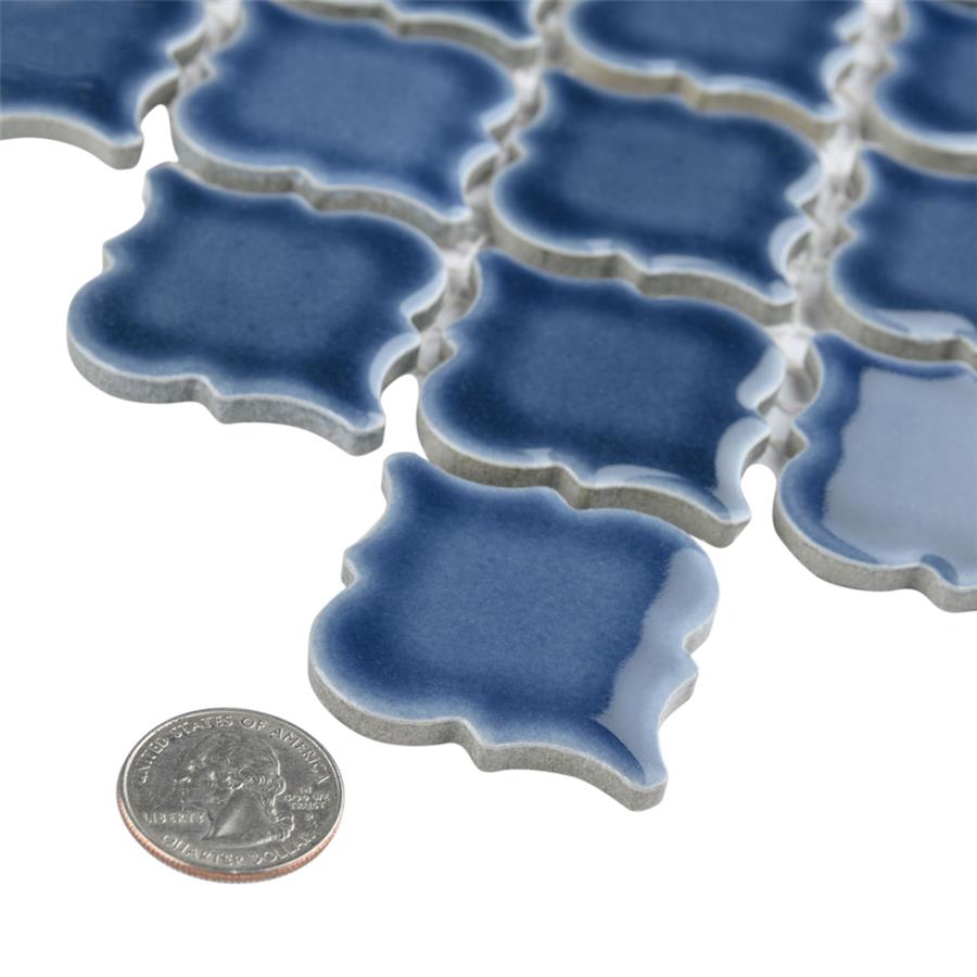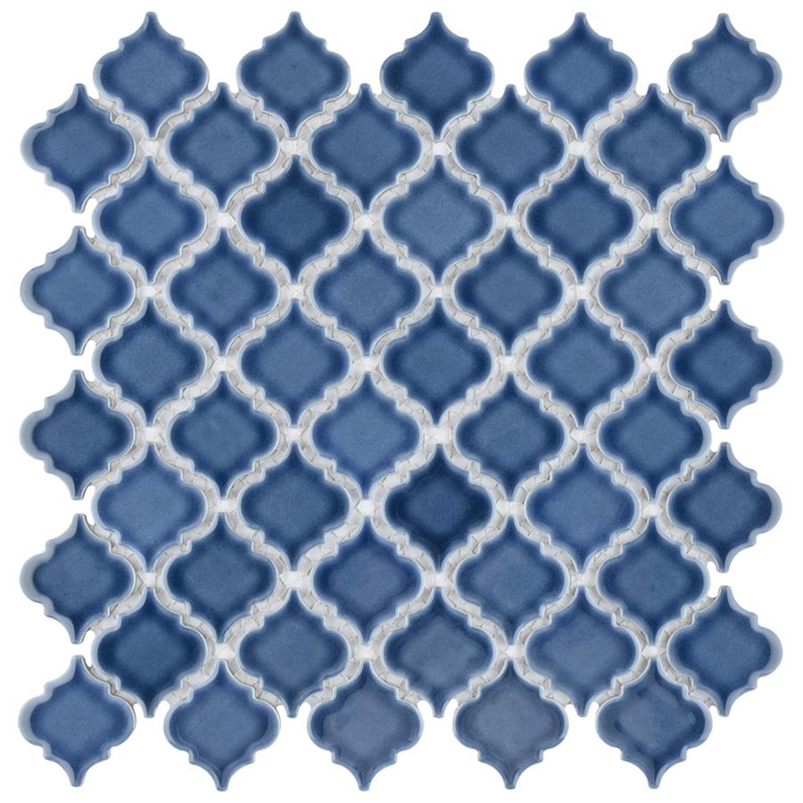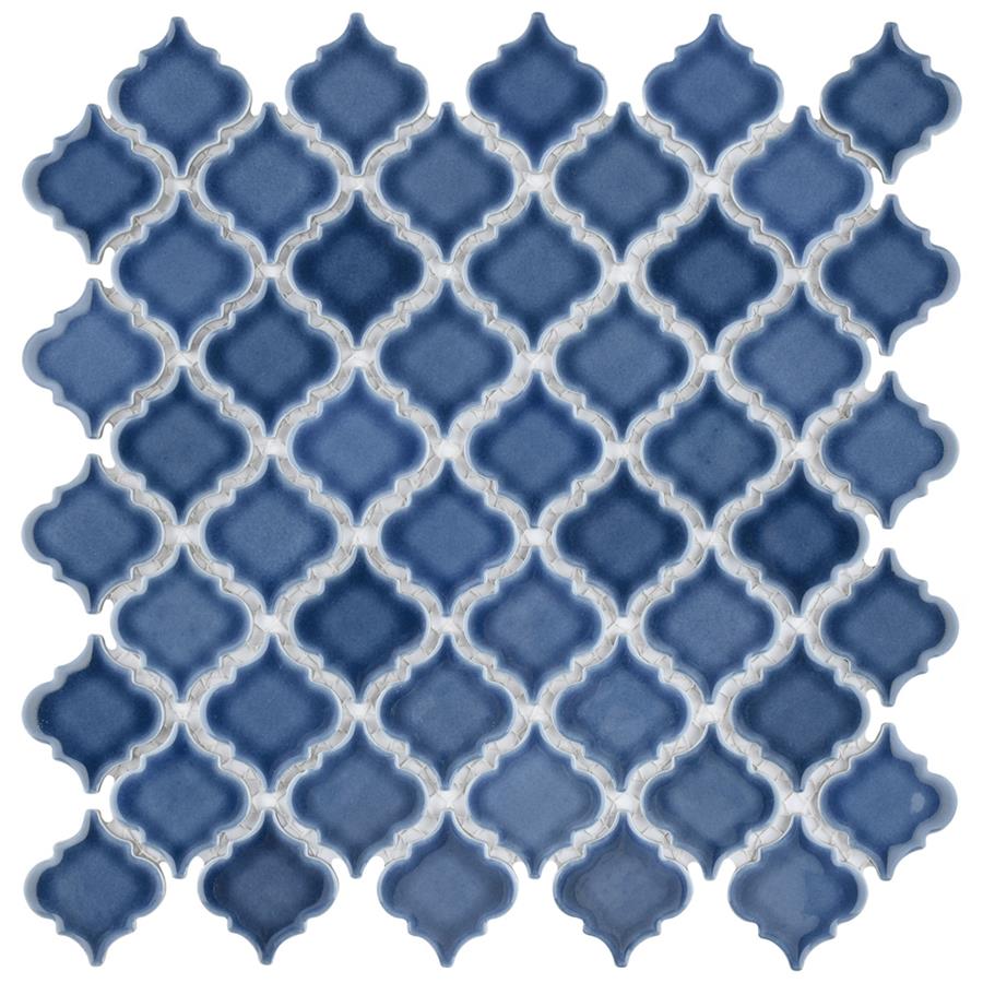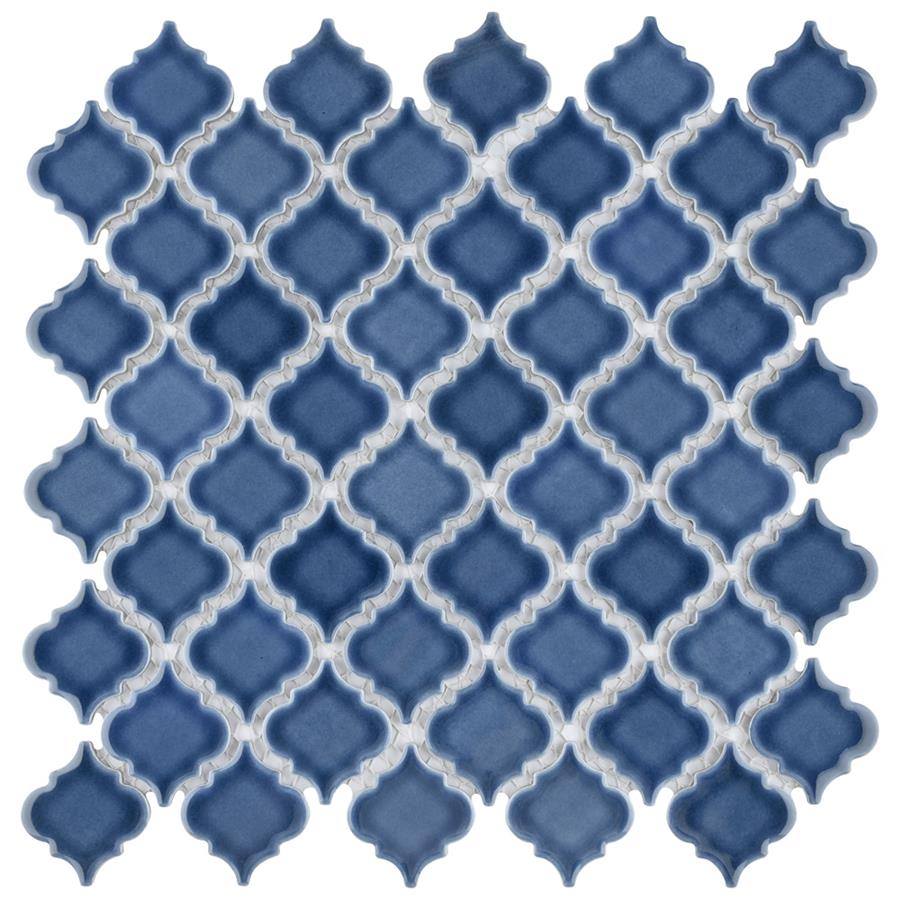 The SomerTile Hudson Tangier Denim Blue 12-3/8 in. x 12-1/2 in. x 5 mm Porcelain Mosaic Tile features our popular lantern design with a modern update. These tiles feature an eye-drop effect reactive glaze, creating a cool French blue in the center, with a gradient to subtle white on the edge. The end effect is a pleasing mixture of cool-toned tints with additional dimension added by the high-gloss finish. Impervious, frost-resistant and easy to clean, this tile is a perfect choice on its own or coordinated with other colors in our Hudson series.